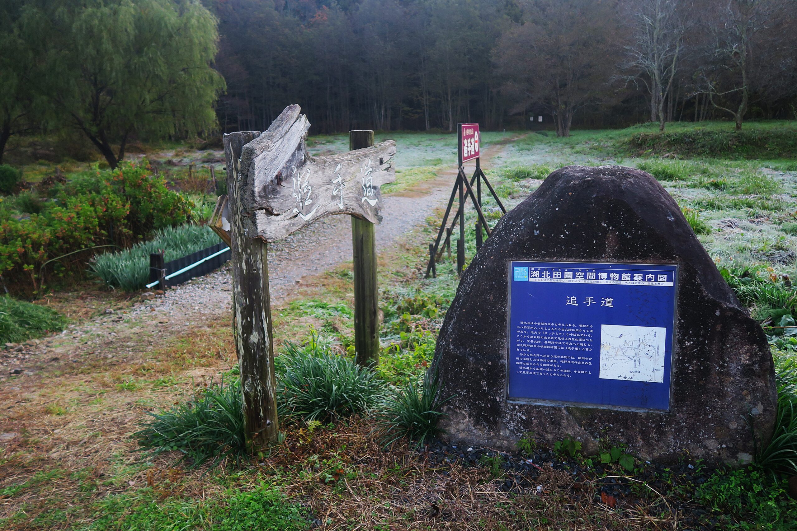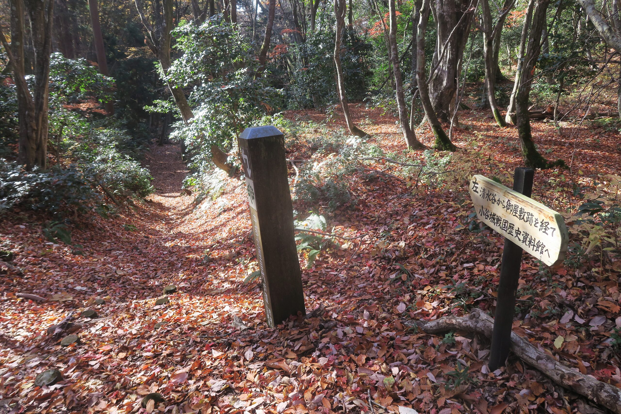 今回は六坊から浅井氏や重臣たちの居館が配置された清水谷道と呼ばれる谷筋を下り、御屋敷、家臣団屋敷跡を見ながら谷の開口部にある小谷城戦国歴史資料館に戻ります。