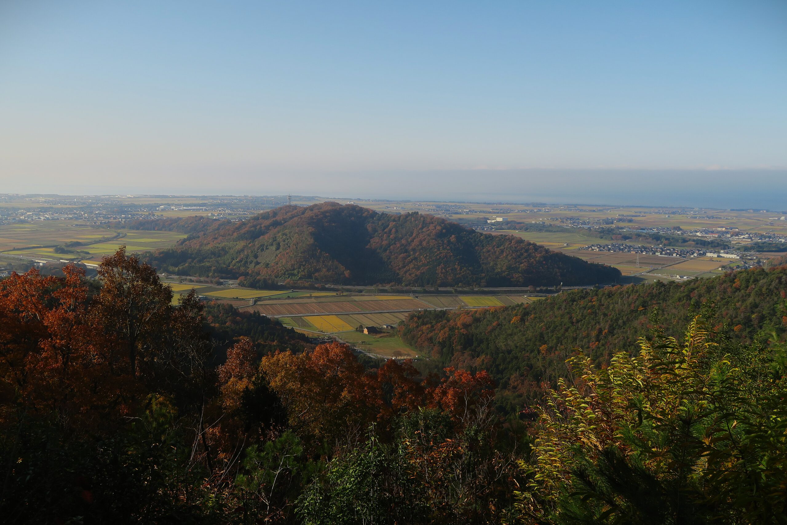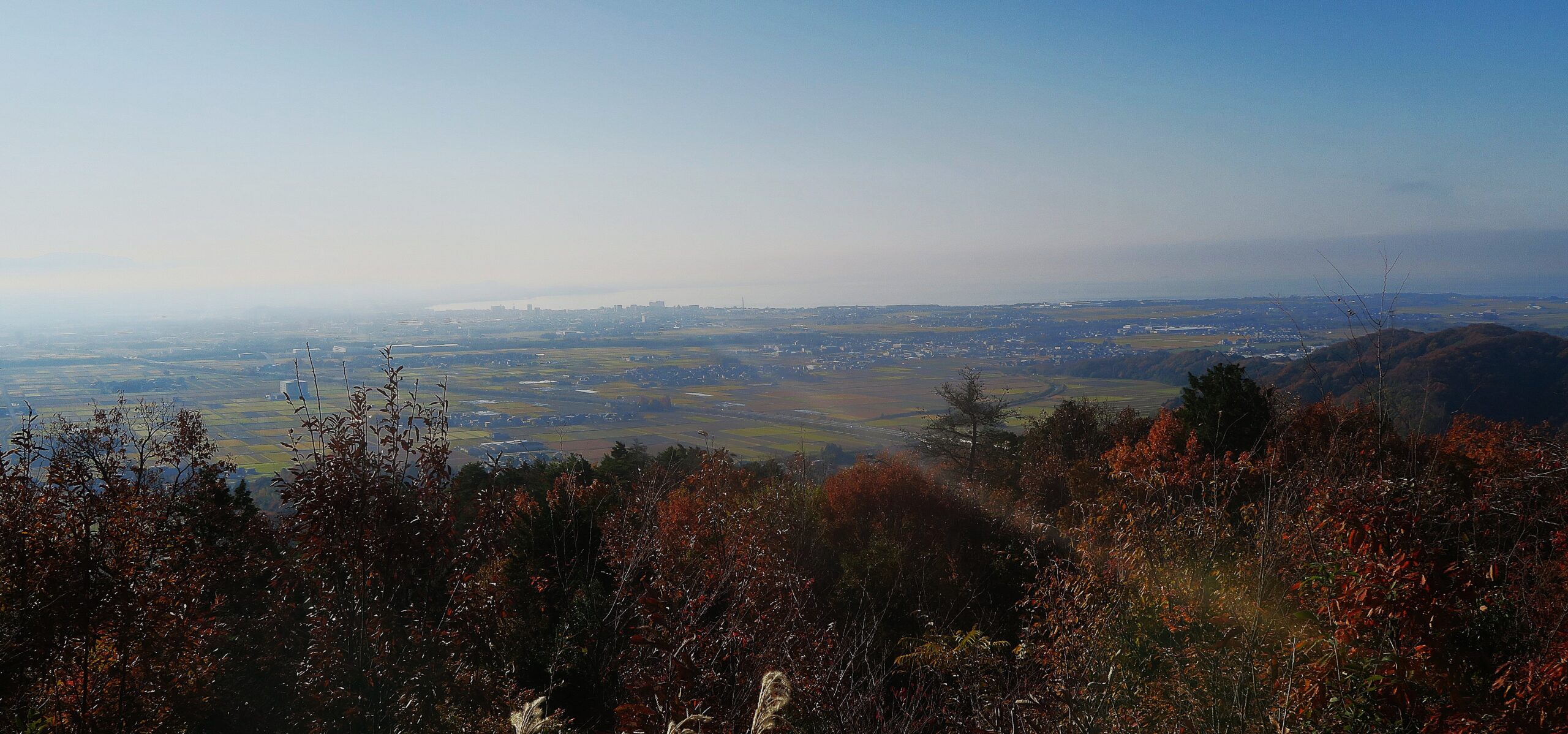 曲輪としては本丸よりも大広間の方がかなり大きい。写真は本丸跡から見た大広間