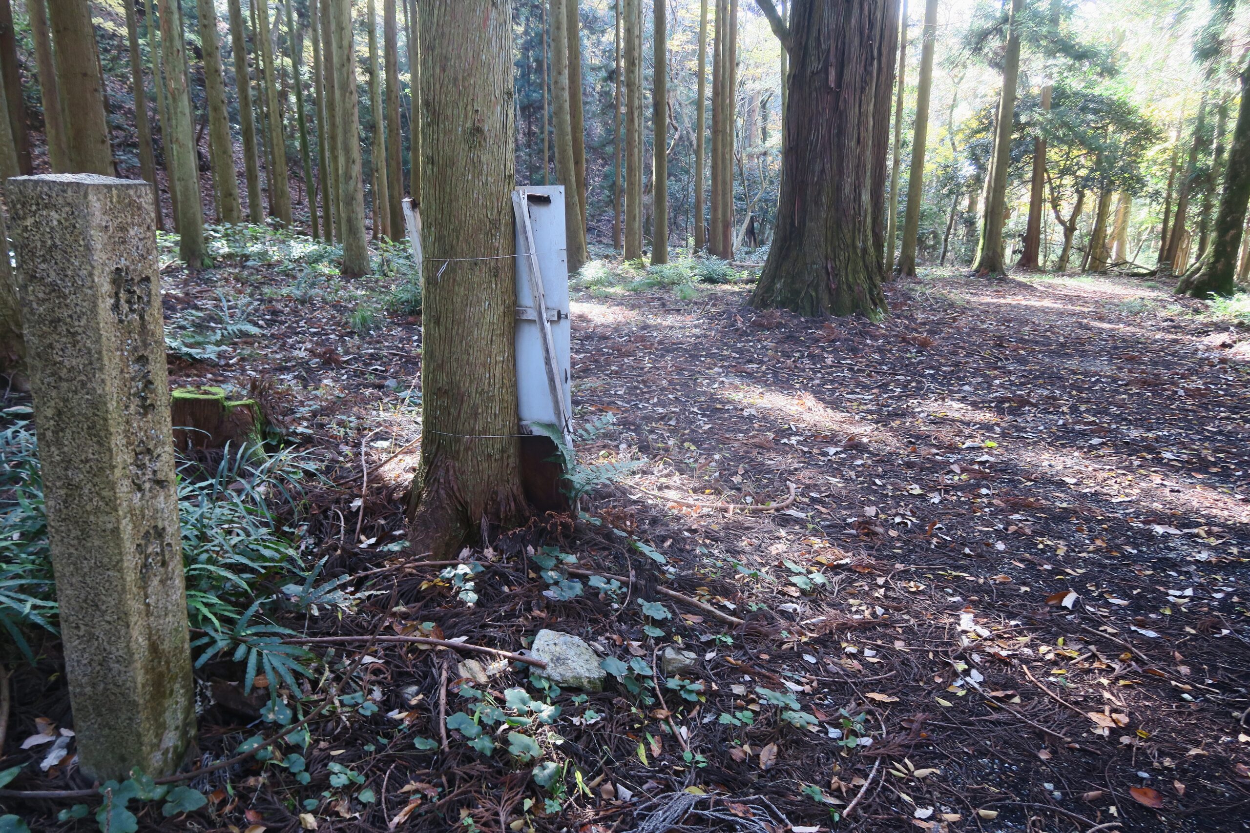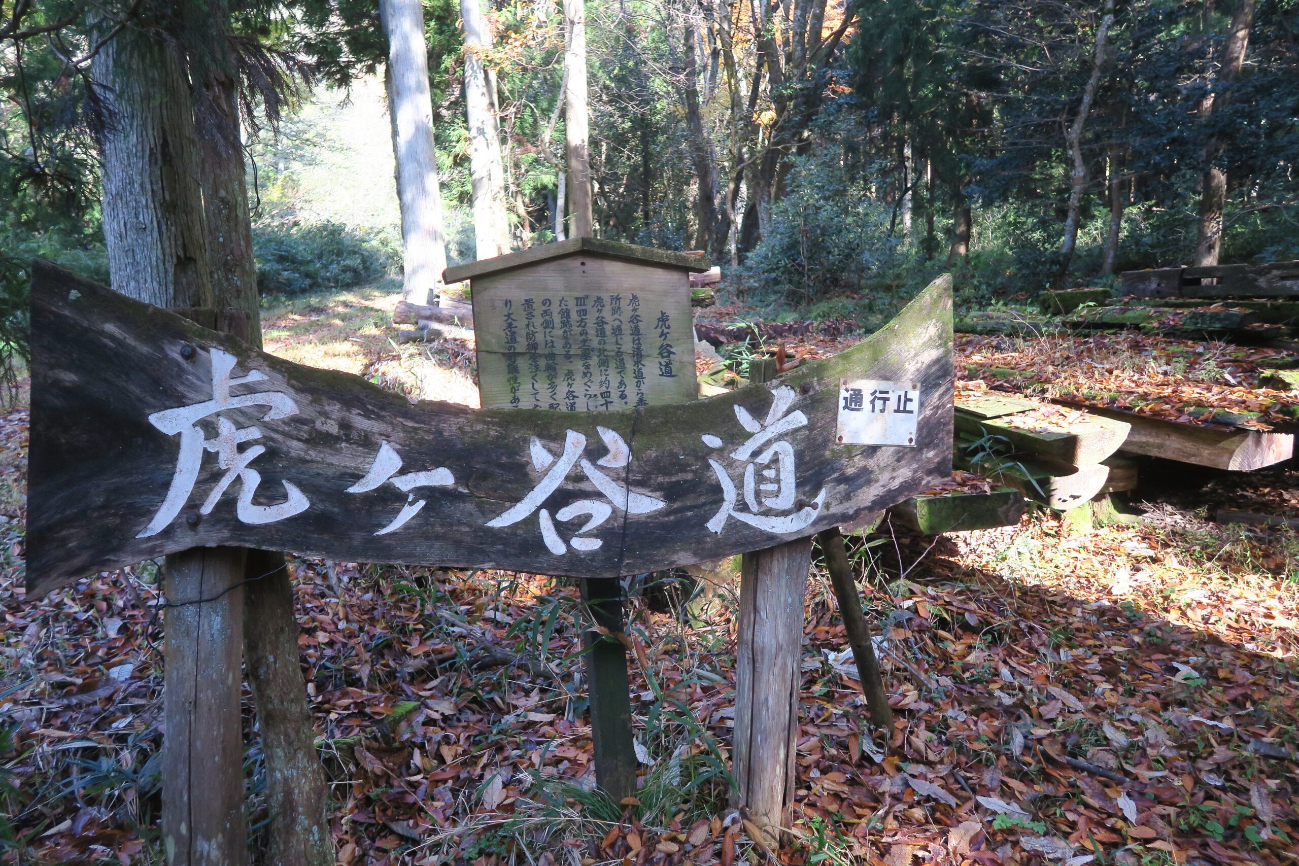 資料館の近くに東側の尾根に向かう追手道入口から登山道に入り、まずは、中腹の駐車場すぐそばの番所跡を目指します。実際小谷城の正面ルートは、この「追手道」と呼ばれるルートがそうであったと言われています。追手道に入る手前の左側、清水谷の入口に位置する場所には、智善院という名の寺がありました。