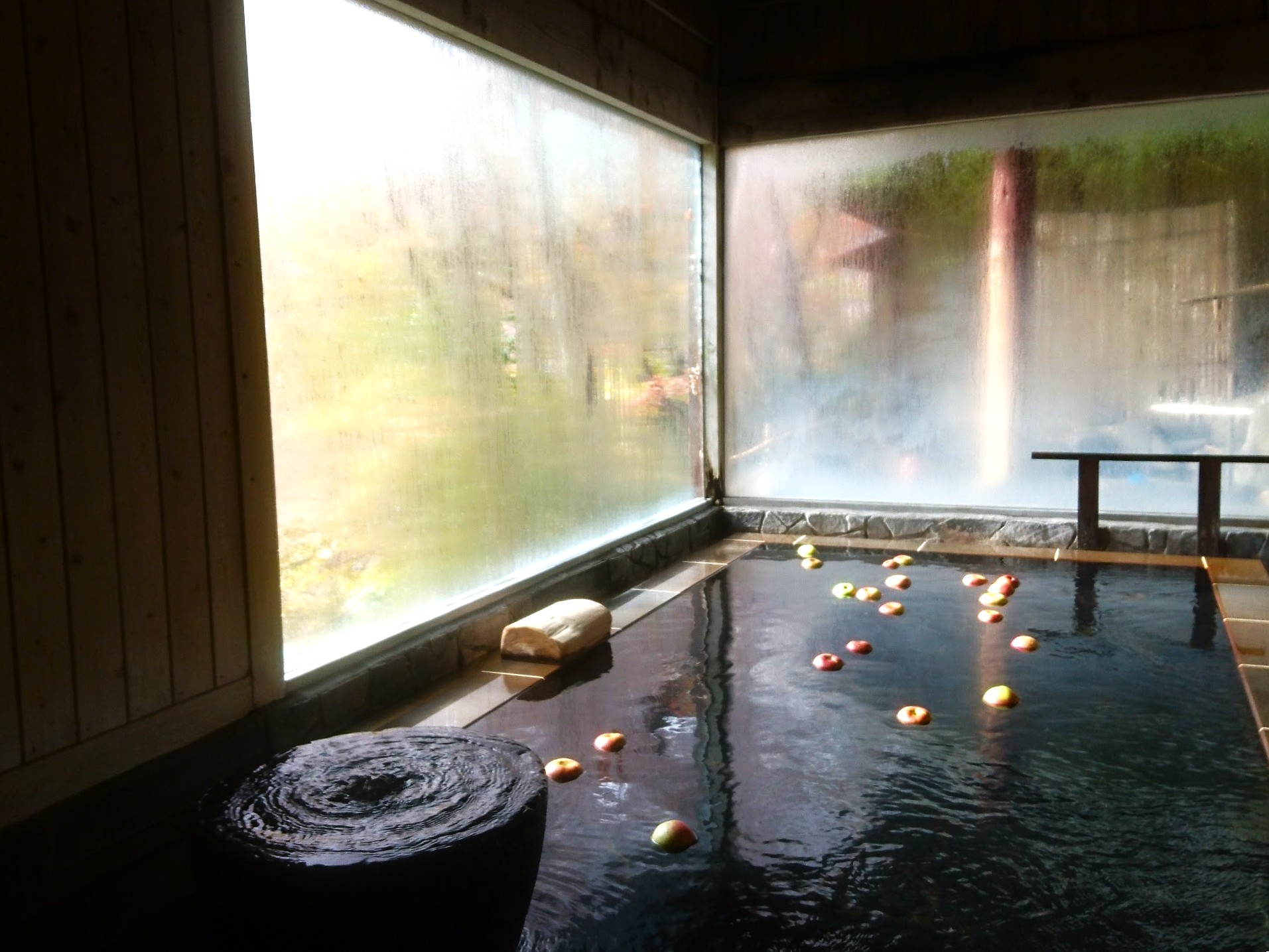 湯船に身を沈めると、温められたリンゴが互いにぶつかりあって放つ香りに、身も心も癒されます。湯に浸りながら、藤村のような詩人になってみませんか?