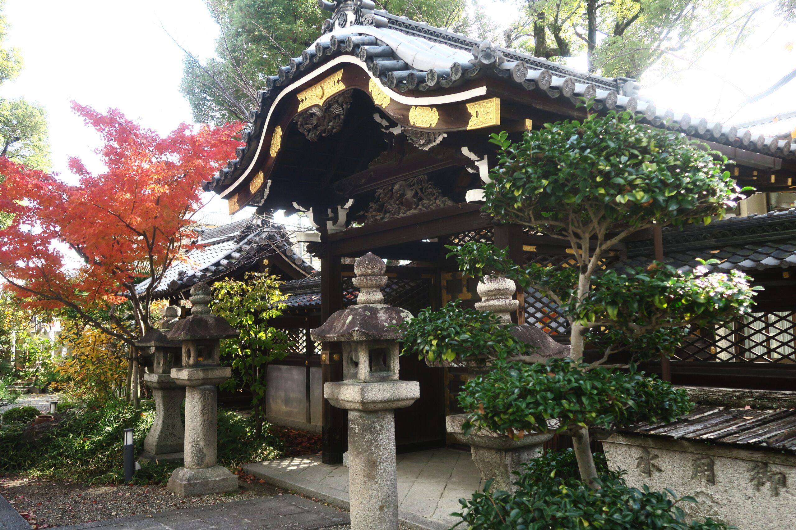 高槻城はその後元和5年(1619)に松平家宣が入り、岡部氏や松平氏を経て、徳川家光の側近も務めた永井直清が慶安2年(1649)に3万6000石で入城し、以降廃藩置県まで220年永井家13代が城主を務めました。斜め向かいに元は高槻城内にあり、古くは「牛頭天王の社」とも呼ばれ歴代城主の信仰も厚かった野見神社が建ち、この境内に永井神社があり、高槻城三の丸の一角に鎮座する野見神社の摂社です。寛政5年(1793)、9代藩主永井直進が初代藩主直清を祭神として創建されました。その後、嘉永元年(1848)に11代藩主永井直輝が直清入城200年を記念して権現様式の社殿を修復し、新たに唐門と拝所を造立しました。