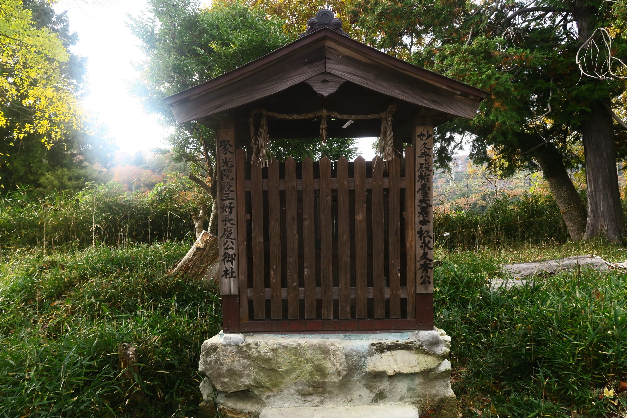 主郭には三好長慶と松永久秀を祀る社があります。