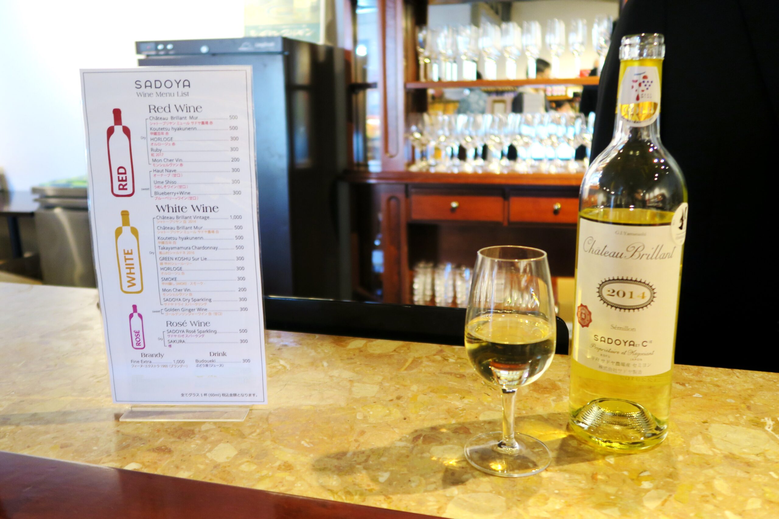 甲府駅に戻り次の目的地「サドヤワイナリー」に向かいます。駅から歩いて5分というとろに、江戸時代から続く油屋「佐渡屋」を明治42年(1909)「サドヤ洋酒店」へ転業し、大正6年(1917)「サドヤ醸造場」を創業して本格的なボルドーワインを醸造しています。昭和11年(1936)には甲府市善光寺町にサドヤ農場を開墾し、フランスよりワイン醸造用品種の苗木を導入し、以来カベルネ・ソーヴィニオン種、セミヨン種を中心に自家農園産ブドウによるワインづくりを続けています。この苗木から納得のいく品質のワインが造れるようになるまで10年。1946年産のワインをシャトーブリヤンと名付け発売するまで4年かかっている。シャトーは、お城や畑、ワイナリー等を指し、ブリヤンには「輝き続けるように」の意味を込めて、1950年「シャトーブリヤン1946」と命名されたのである。