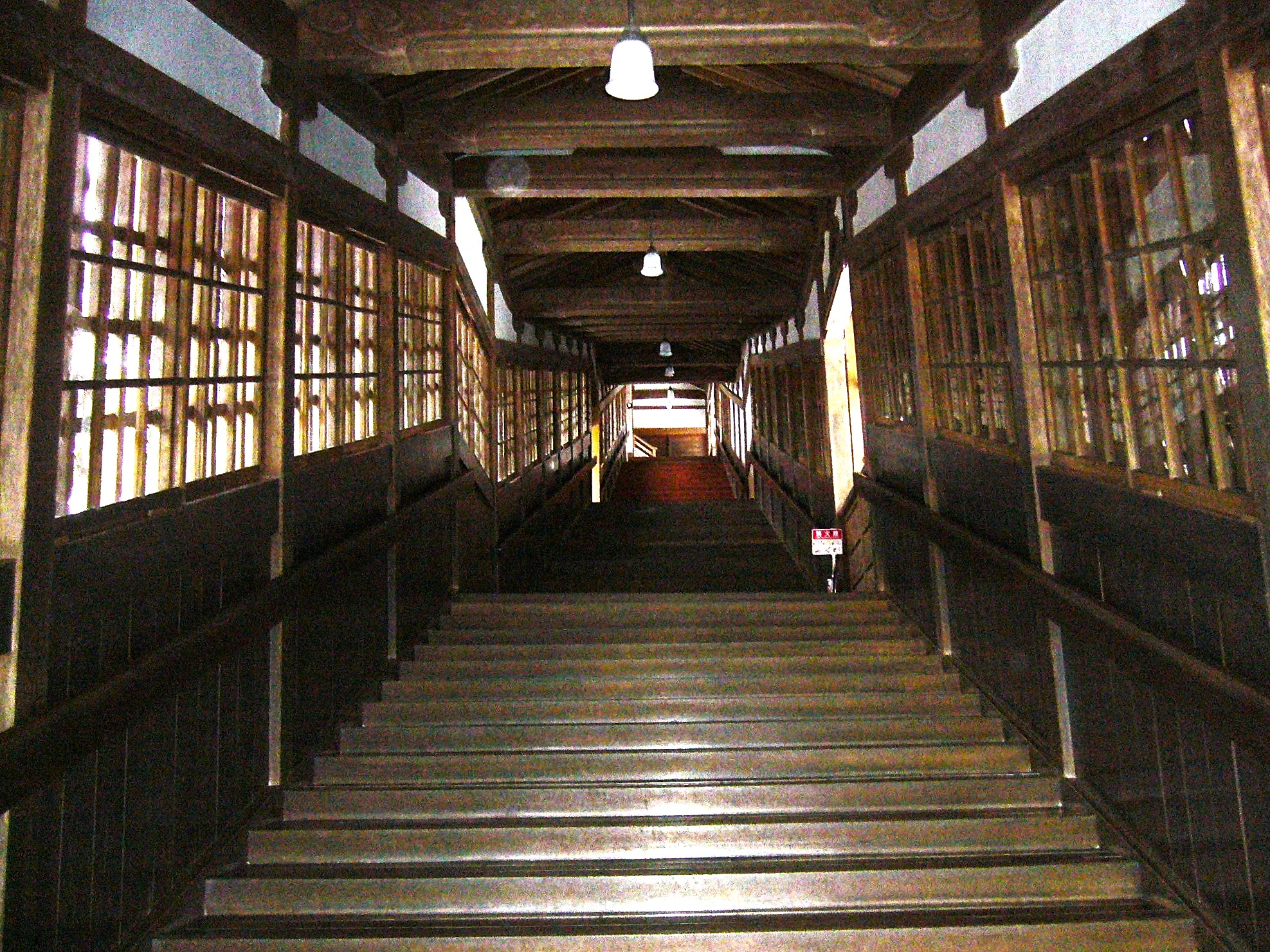 緻密な建物の彫刻も素晴らしいですが、磨き上げられた廊下も美しい。階段や廊下の床板は美しいほどに磨き上げられていますが、これは毎朝修行僧が雑巾がけをしているたまものとのこと。永平寺の一日は起床を知らせる振鈴から始まり、午前4時、振司と呼ばれる雲水(修行僧)が二手に分かれて鈴を鳴らしながら回廊を全速力で駆け抜けます。起床した修行僧は作法に従って洗面を行い、歯を磨き、そして坐禅のために僧堂へと向かいます。すべての回廊は左側通行で、ときどき行き交う雲水たちは皆、黒い法衣で身を包み、軽やかに早足に通り過ぎていきます。