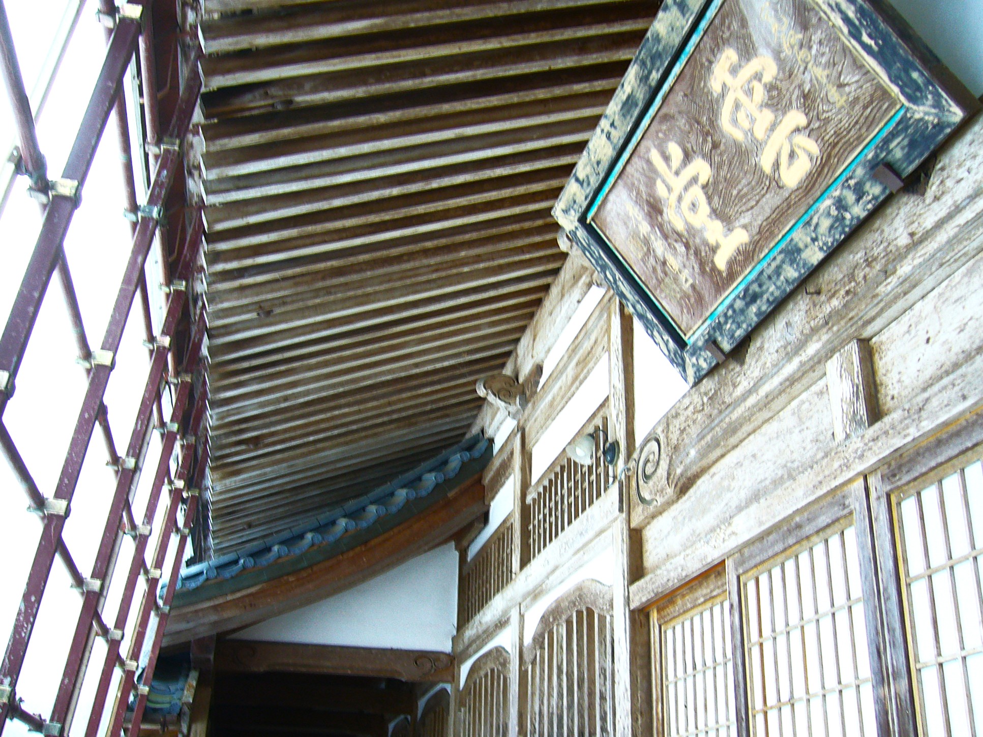 回廊を上り法堂へ。先に開祖の道元禅師をはじめ永平寺歴代禅師の御霊骨と位牌を安置する④「承陽殿」から一天門(承陽門)を眺める。彫刻が見事です。