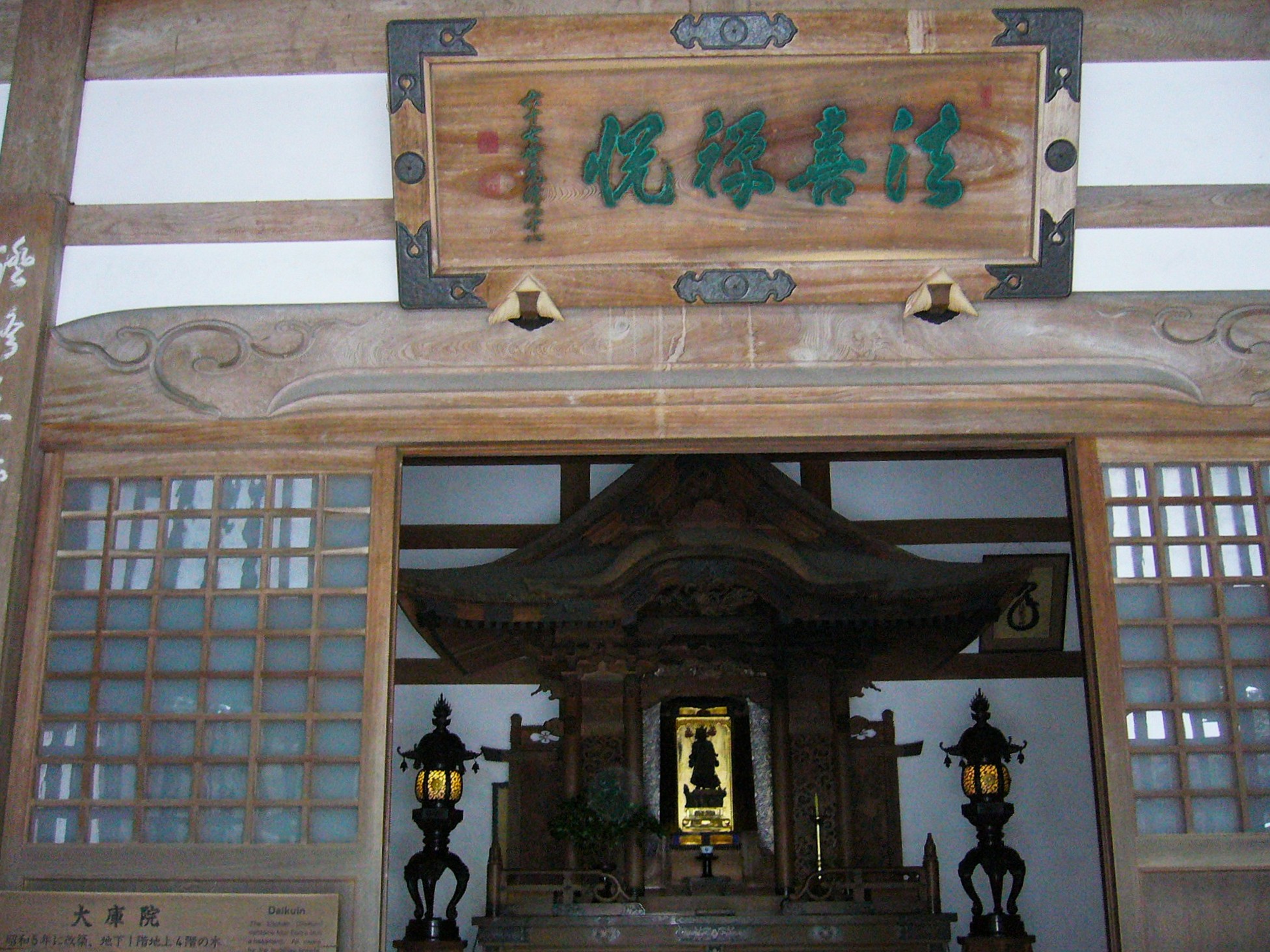 中心に位置する仏殿に祀られているのが中央の須弥壇に安置されている釈迦牟尼仏。須弥壇の上には三体の仏像が並び、向かって左から過去・現在・未来の三世を現し、欄間には禅宗の教えが彫られた十二枚の彫刻がはめられています。「覚皇宝殿」とも呼ばれる仏殿では修行僧による昼の読経「日中諷経」と午後のお勤め「晩課諷経」が行われています。