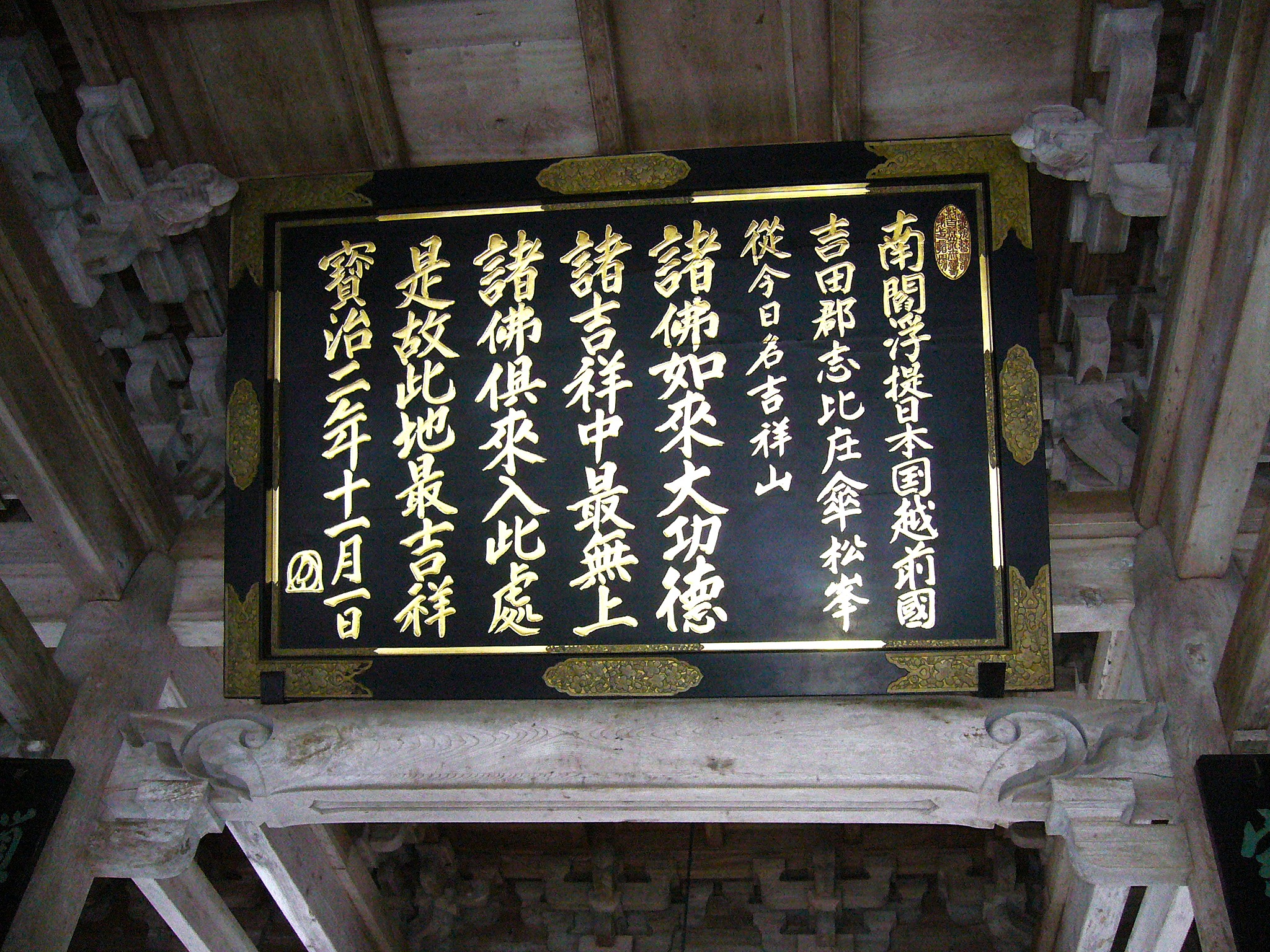 見上げると吉祥山永平寺の命名の由来である「吉祥の額」が掲げられています。修行僧が通れるのは入山と下山のときのみで、住職のみが通れる神聖な場所。もちろん参拝客も山門から出ることはできません。