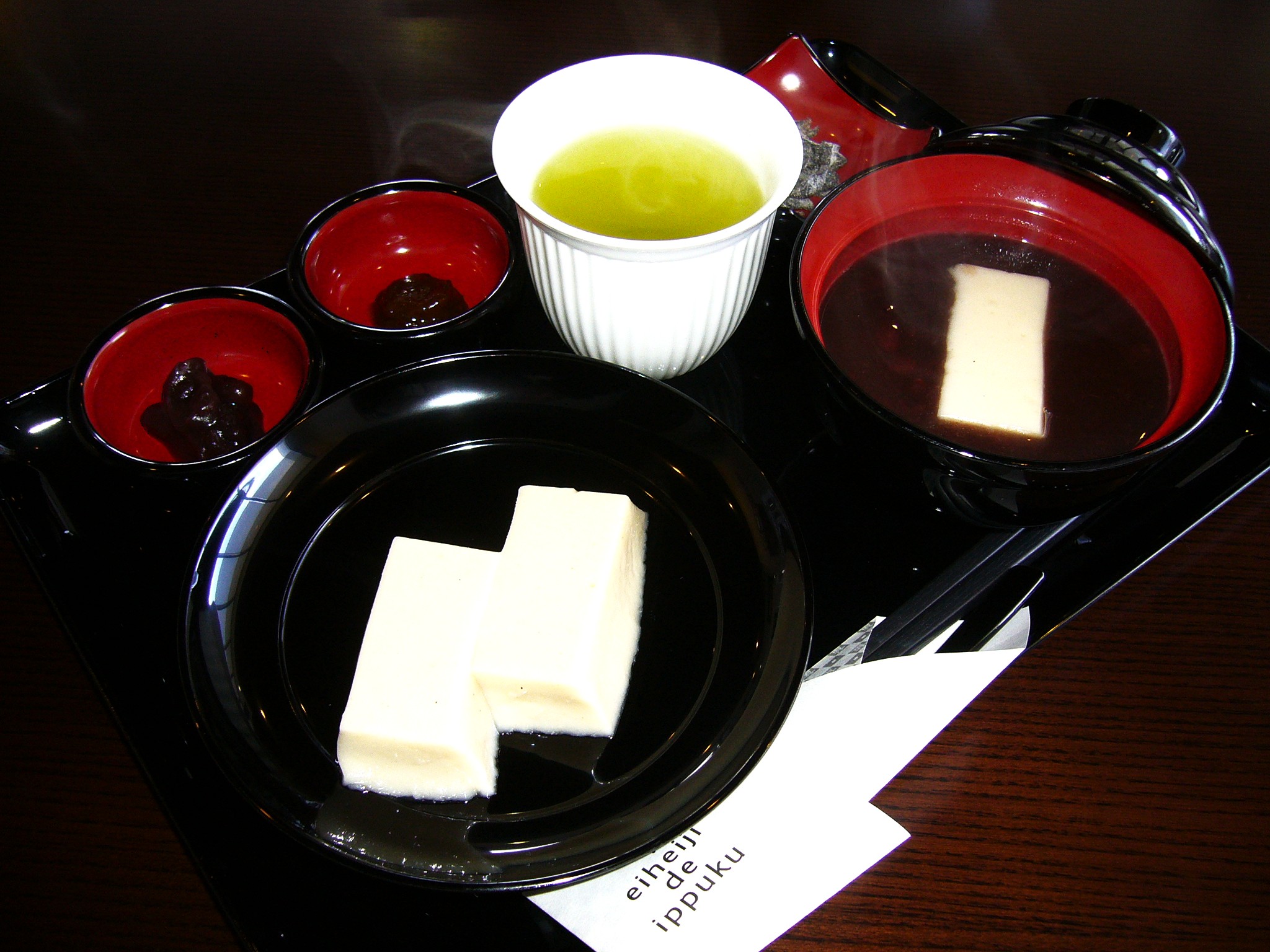 「永平寺御用達 團助 ごまどうふ本店」に立ち寄る。創業明治21年「大本山永平寺御用達」認可を戴き、精進料理の代表格「ごまどうふ」を作り続ける團助でいただくことに。