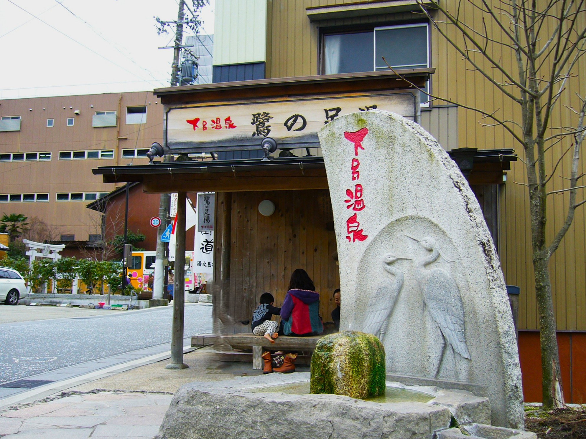 冬の下呂は寒く、肌を刺すように吹き抜ける風は、体の芯まで凍らせます。温泉街に点在する無料の足湯に浸かり、道々であたたまりながら、ゆっくりと町を散策します。下呂の街は今も温泉街としての輝きを失わず、ぶらぶら散歩するのが楽しい。ところで下呂温泉はNHKと韓国SBSが合作した2010年日韓共同制作ドラマ「赤と黒」のロケ地になっていて第6話では「モリの足湯」に浸っています。※現在閉鎖中。写真の下呂温泉最初の足湯の「鷺の足湯」であたたまります。清潔感溢れる檜造りで温泉風情も満喫できます。