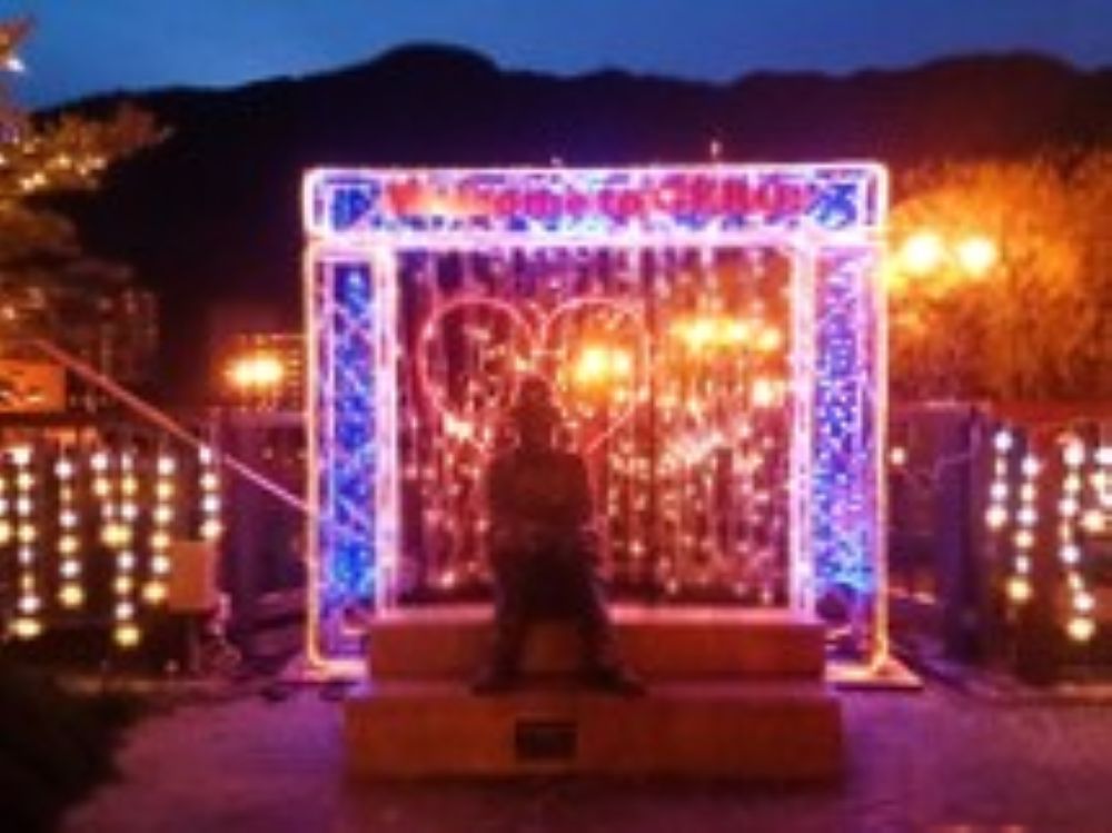 雨情公園には無料の駐車場があるので、車を停めてゆっくり温泉街を散策しましょう。ここからせせらぎの小径と呼ばれる阿多野川の両側の径沿いに、雪の結晶が描かれた行灯が、白鷺橋を過ぎて湯之島橋に向かって100基建てられています。実はそのうちの5基にはハートの模様が描かれていて、すべてのハート模様の行灯を見つけると、きっとステキな願いが叶えられることでしょう。