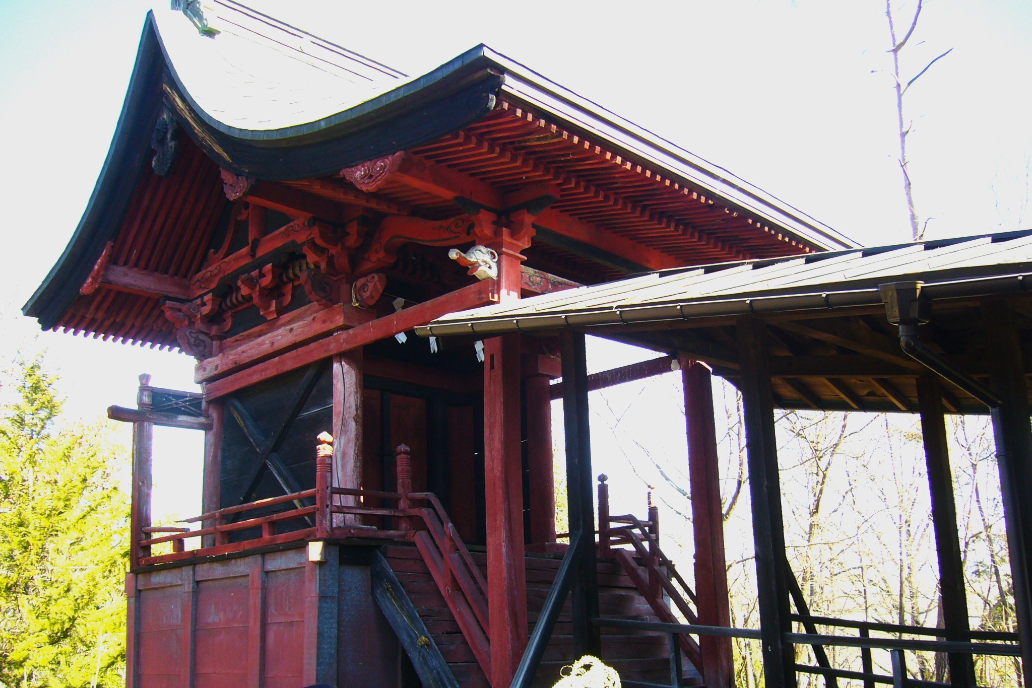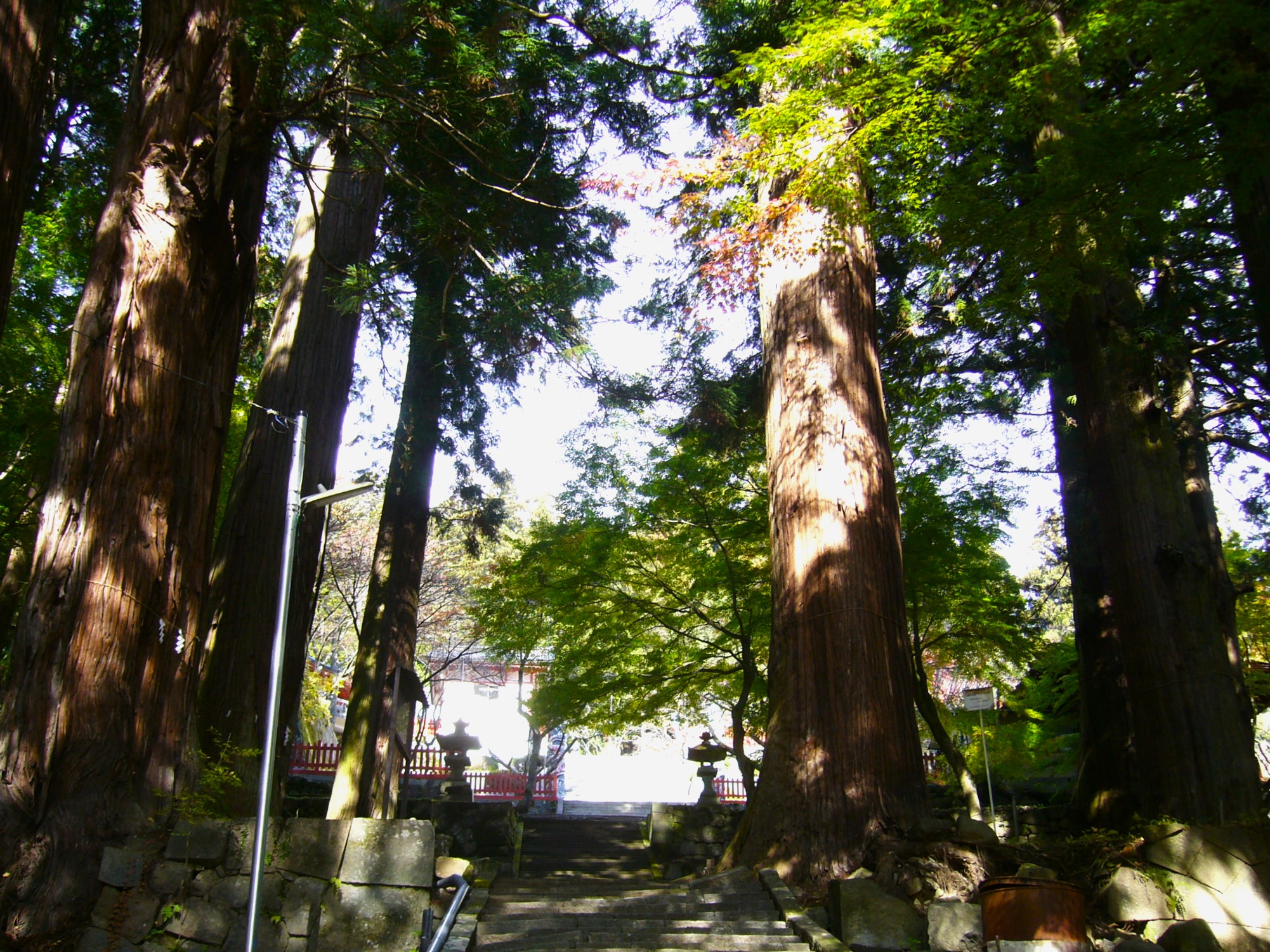 かつては国重文指定の伽藍が並んでいましたが昭和30年(1955)の火災で焼失してしまい鎌倉時代の入母屋造りで再建されたのが現在の朱塗りの立派な社殿です。御祭神は少彦名命、須佐之男命、日本武尊、櫛稲田媛命で参拝を済ませたら、拝殿前の広場の端にある富士見台に立ってみてください。春は霞がかかりやすいが、雪を冠った富士山頂を拝むことができれば幸運です。
