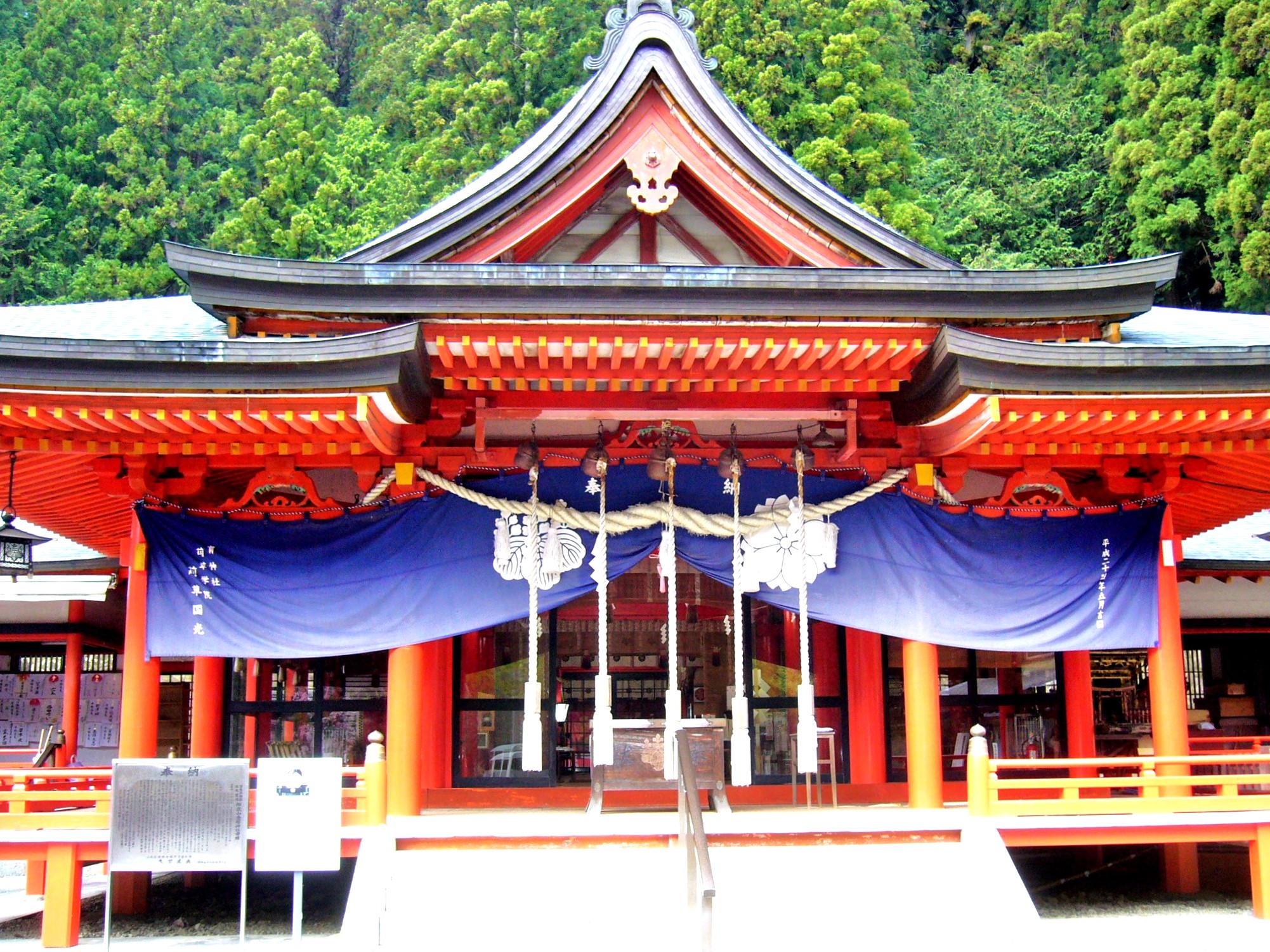 後方に朱塗りの流れ造りの御本殿が鎮座されています。