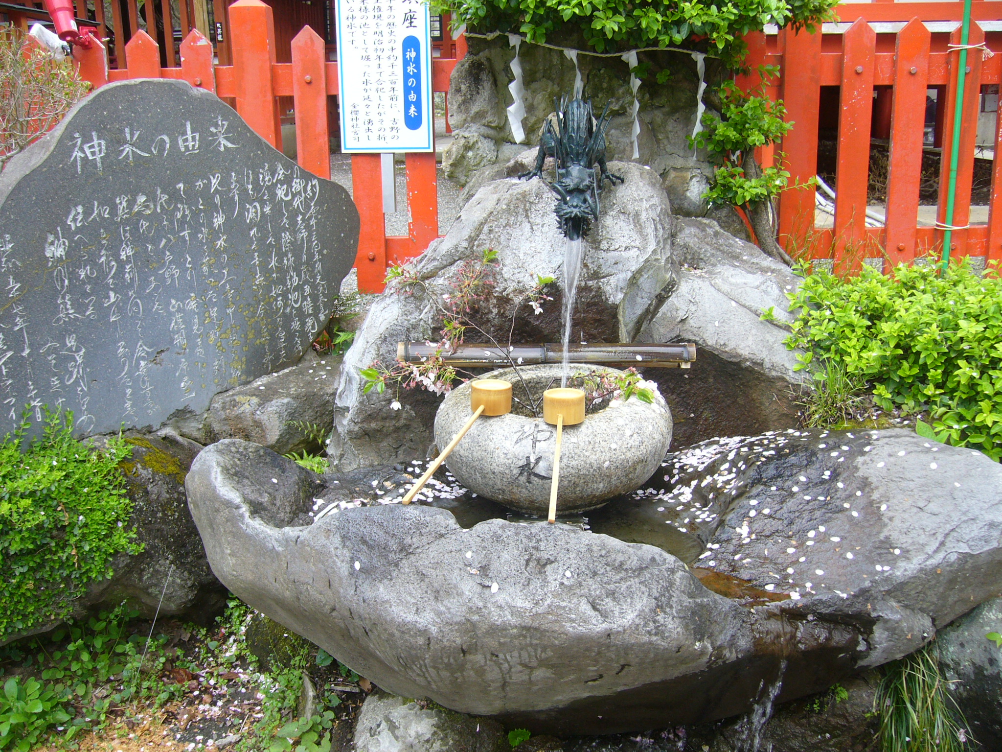 鳥居の手前には石で組まれた御神水があります。2000年の歴史の中約1300年前に、吉野の蔵王権現を明治初年まで合祀したがその折、如来様の池として掘った水が延々と湧出している神水とのこと。お水とりスポットで是非水に触れ飲んで下さい。運気が吸収できます。