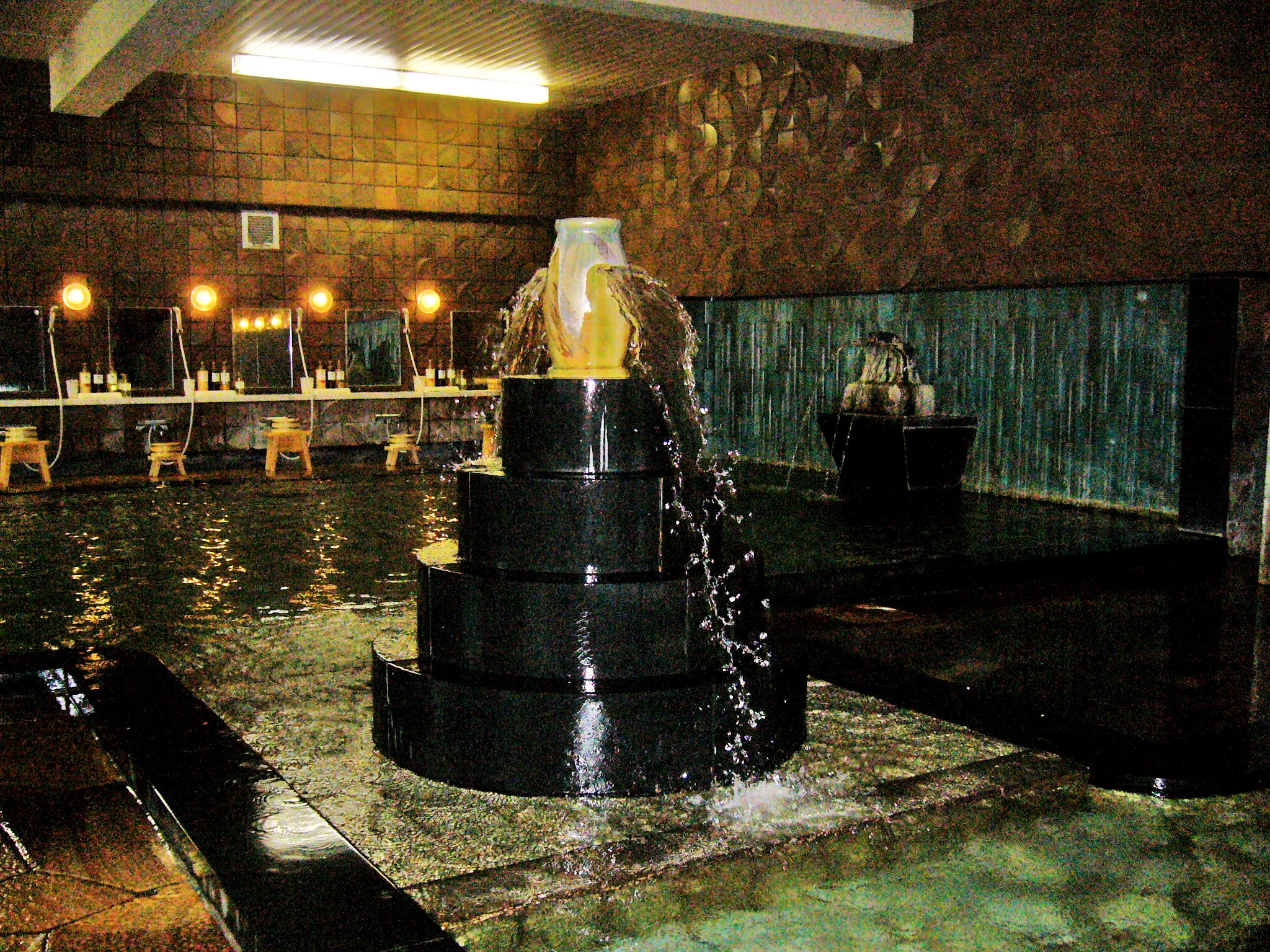 内湯の大浴場と石造りの露天風呂は広く、湯がオーバーフローしていて気持ちがよい。泉質は、アルカリ性単純温泉(低張性アルカリ性温泉)で加温ありです