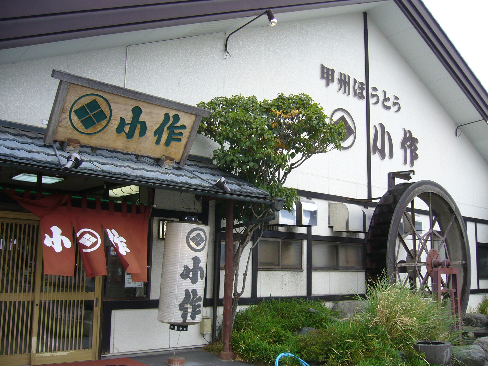 山梨といえば郷土料理のほうとうです。2007年には農林水産省により各地に伝わるふるさとの味の中から決める「農山漁村の郷土料理百選」の中のひとつに選ばれています。ホテルの向かいにある「甲州ほうとう 小作」でいただきます。山梨に来たらほうとうで今回で5軒目です。だんだんほうとう通になってきたことを実感している今日このごろ。今回はどんなほうとうだろうと楽しみです。山梨には「うまいもんだよカボチャのほうとう」という言い回しがあるほど皆に親しまれています。意味は何事も自分の思い通りに事が運んだ時について出る言葉らしい。