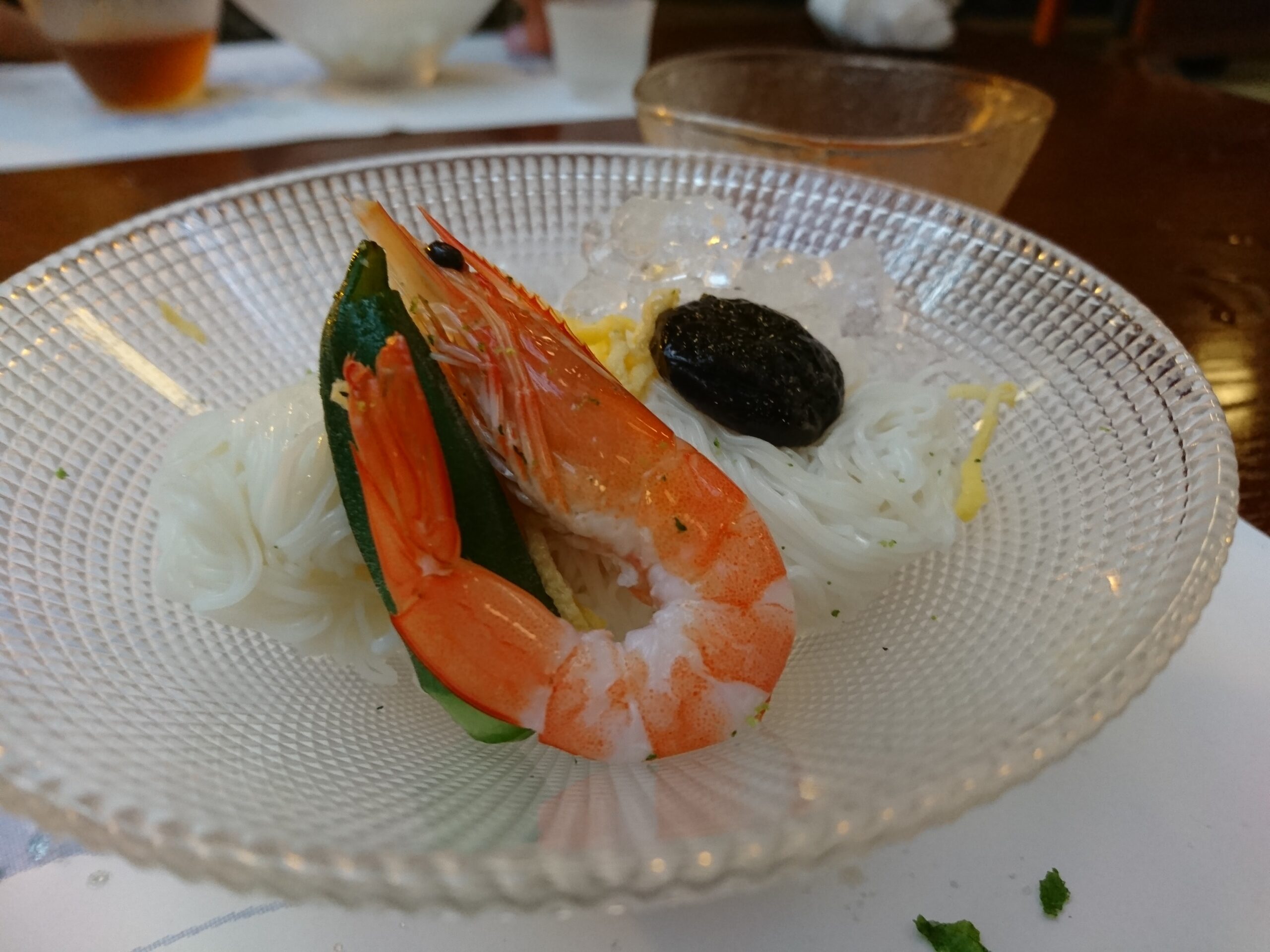 冷鉢の極細の絹巻そうめんは湧水でキリッと冷やされ喉越しがよい。三輪そうめんかな?