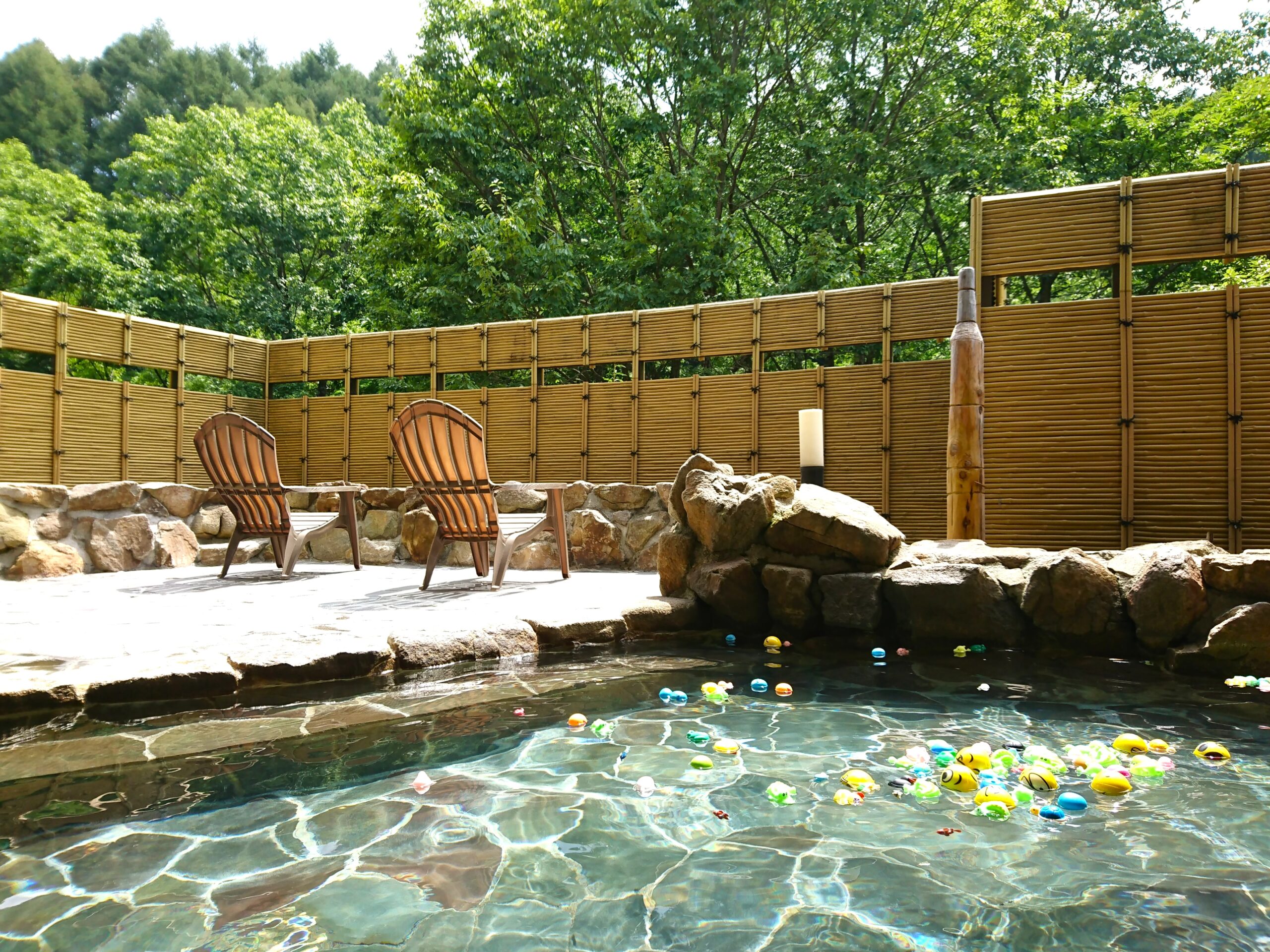 開放感に浸れる露天風呂にはサンデッキがあり、太陽を浴びて寛ぐことができます。