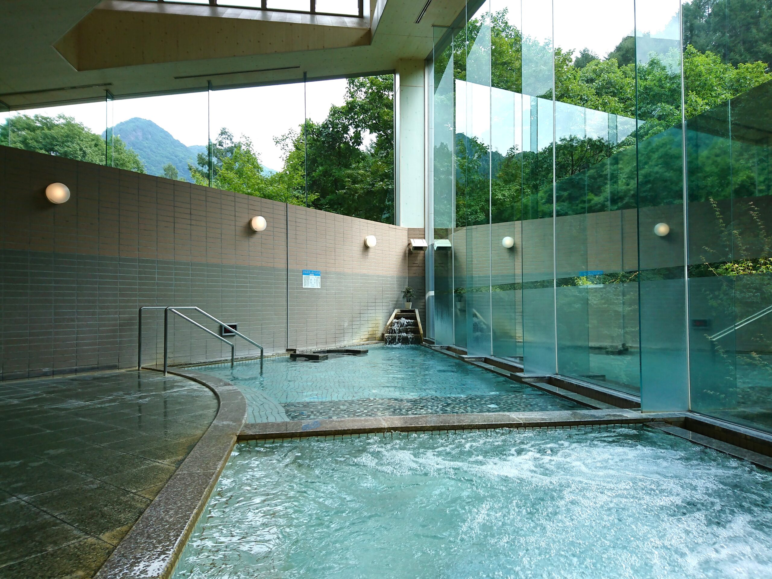 「犬ころの滝」のすぐ近くの日帰り温泉施設が平成13年4月にオープンした「南相木温泉 滝見の湯」です。5m以上と広々と大きく取った窓からは森の緑と青い空、日差し湯に降り注ぎ爽快感が格別。単純泉の湯もとろっと柔らかく肌を包み込みます。男女別の2つの湯船は1週間ごとに入れ替わり、片方の犬ころの滝が眺められるガラス張りの大浴場には寝湯ができる浅瀬浴槽や電気風呂があり、遠赤外線高温サウナやミストサウナが設置されています。