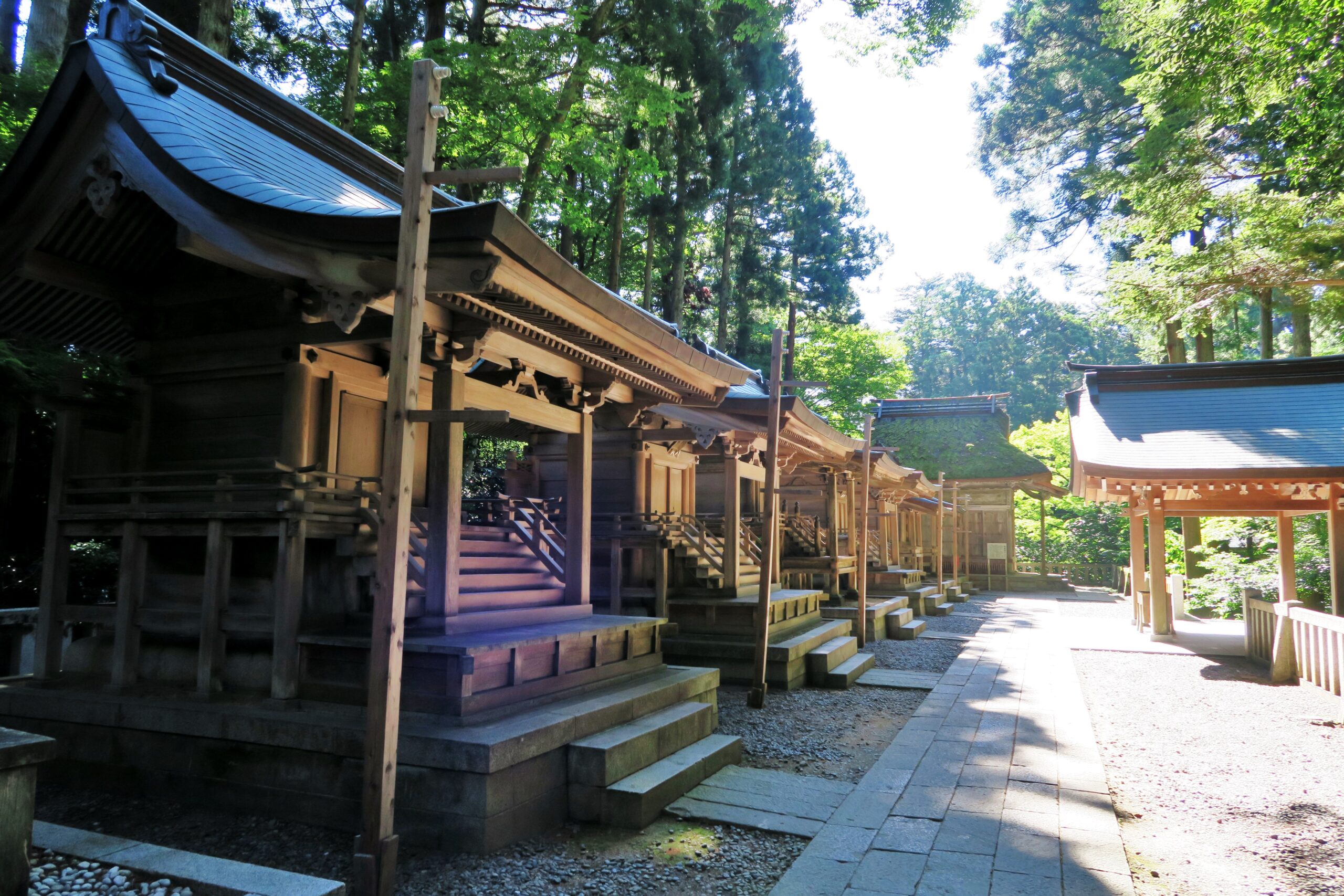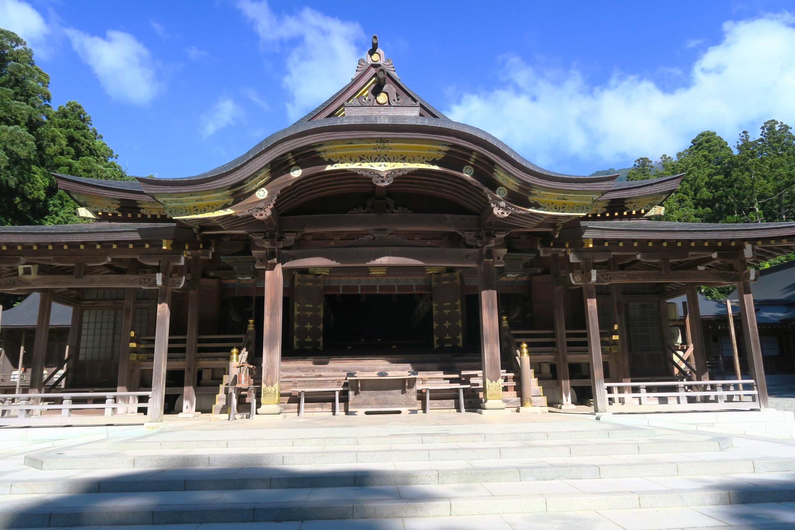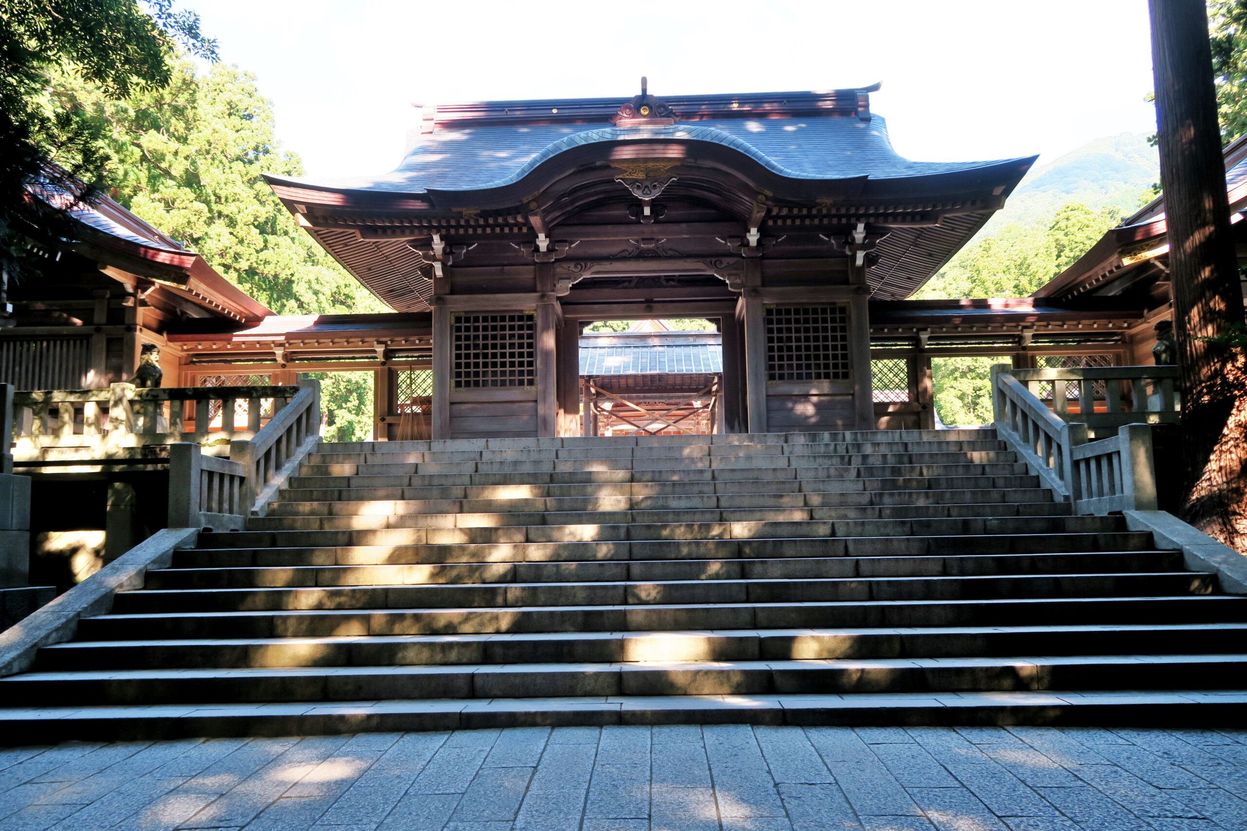 2000年来の神領地として朝廷や上杉謙信、徳川幕府の大名家から崇拝され、庇護を受けてきました。明治45年(1912)の社殿焼失により大正5年(1916)に再建された社殿は、三間流造で明治神宮、築地本願寺などを手掛けた建築家の伊東忠太が設計しました。