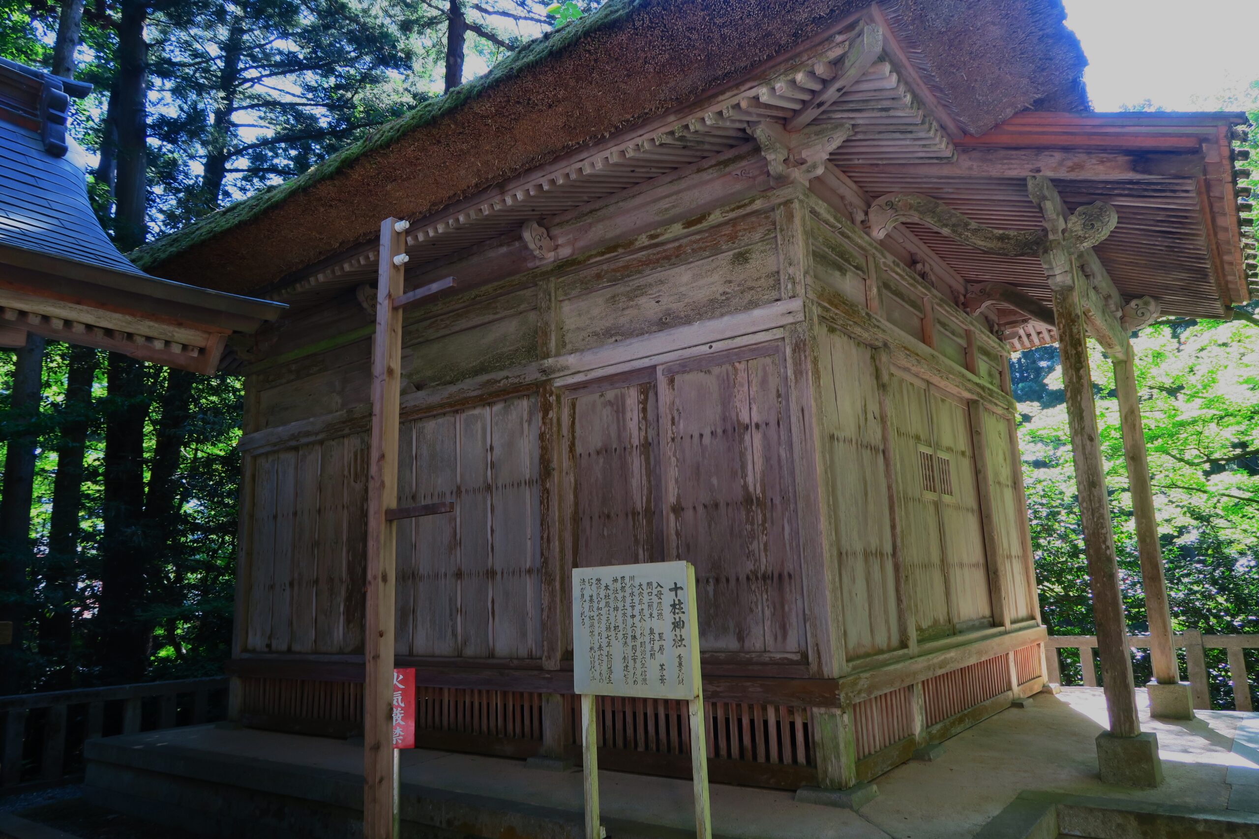 末社には近畿周辺の著名二十二ヶ所の大神を祀る二十二所社、京都以東の著名八ヶ所の大神を祀る八所神社そして国重要文化財に指定されている「十柱神社」です。元禄7年長岡藩主牧野氏が和霊の為に奉建した入母屋造、単層茅葺の建物です。大己貴神と大地、水、山、海、土など国土の安全を守護する十柱の大神を祀ります。