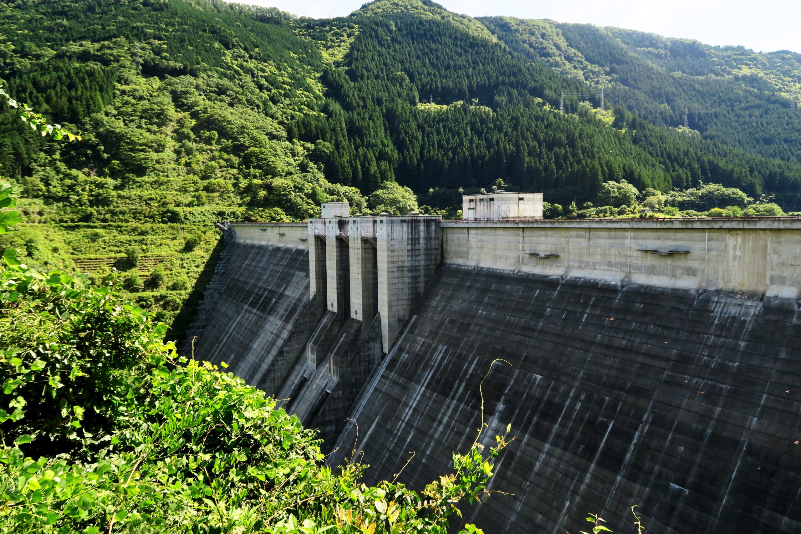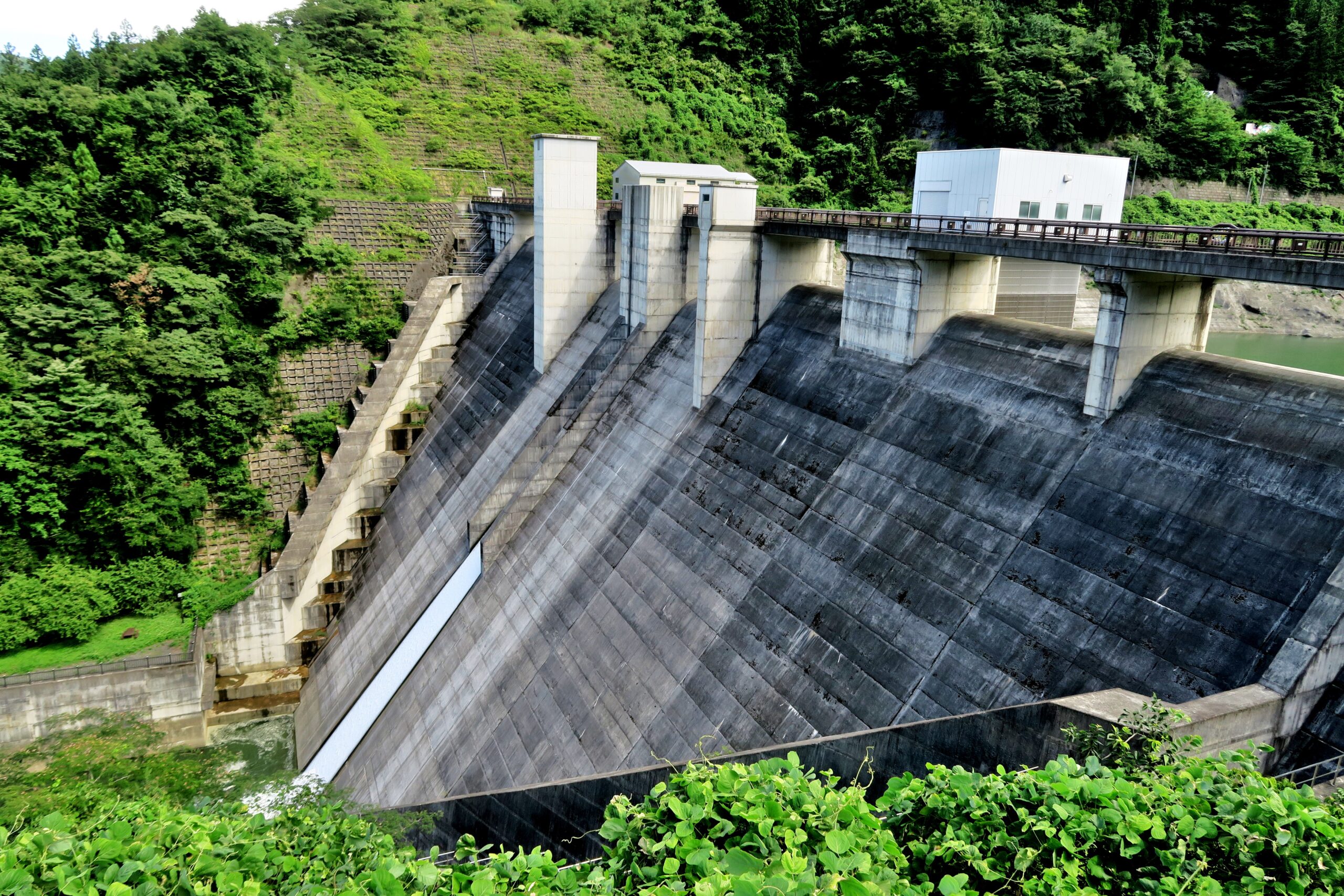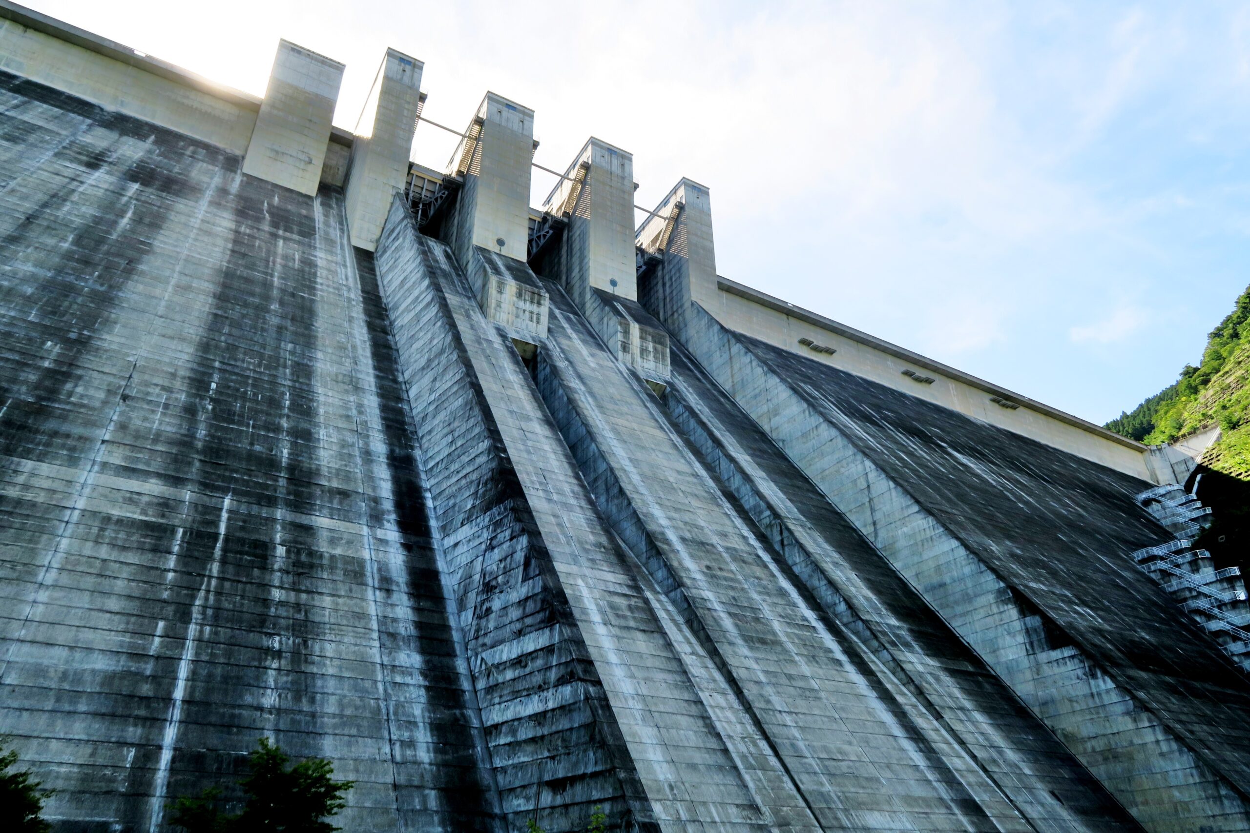 見所はダム堤体が見学できることで高低差132mのエレベーターで一気に降り、下流広場からダムを見上げれば、迫力満点の姿が眺められます、丁度放水時でまるでシルクのように流れる姿はとても美しかったです。