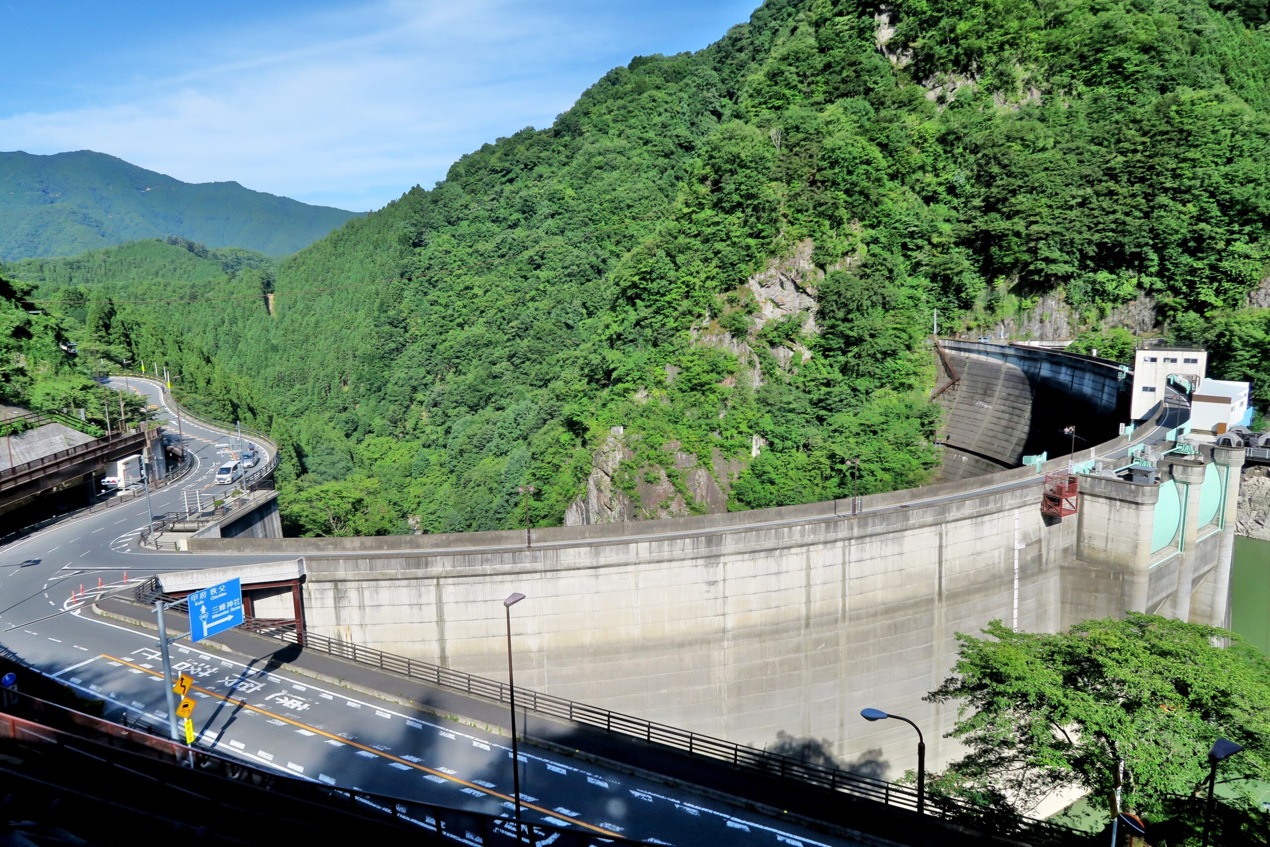 秩父市大滝(旧秩父郡大滝村)の荒川水系中津川に建設された重力式コンクリートダムは、高さ132m、秩父多摩甲斐国立公園の中にあり、奥秩父の大自然との調和をテーマに配慮され、ループ橋(国道140号)とダムが一体となったダイナミックな姿になっています。秩父4ダムの中で一番新しく平成20年(2008)完成です。