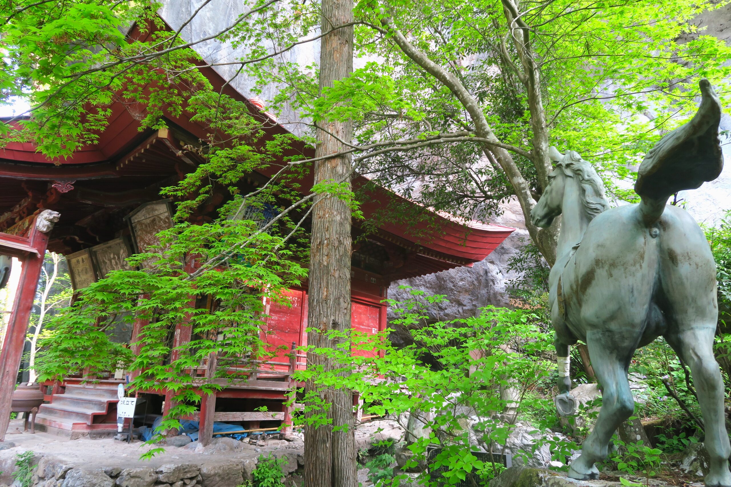 本尊は秩父札所の観音様の中で唯一、馬頭観音を祀ります。観音は十一面観音や千手観音などさまざまな姿で表されますが馬頭観音もそのひとつ。馬を頭上に戴いて忿怒の形相をしていることが特徴です。日本百観音のうち、馬頭観音を本尊としているのはここと西国第29番札所・松尾寺の二寺だけです。その昔、弘法大師が柚の老木を刻んで馬頭観音とし、ここに安置したのが始まりといいます。この地がかつて馬が休憩する場所であったようで、馬が貴重な輸送手段だった時代から、交通安全の観音様としてもあがめられてきたようです。
