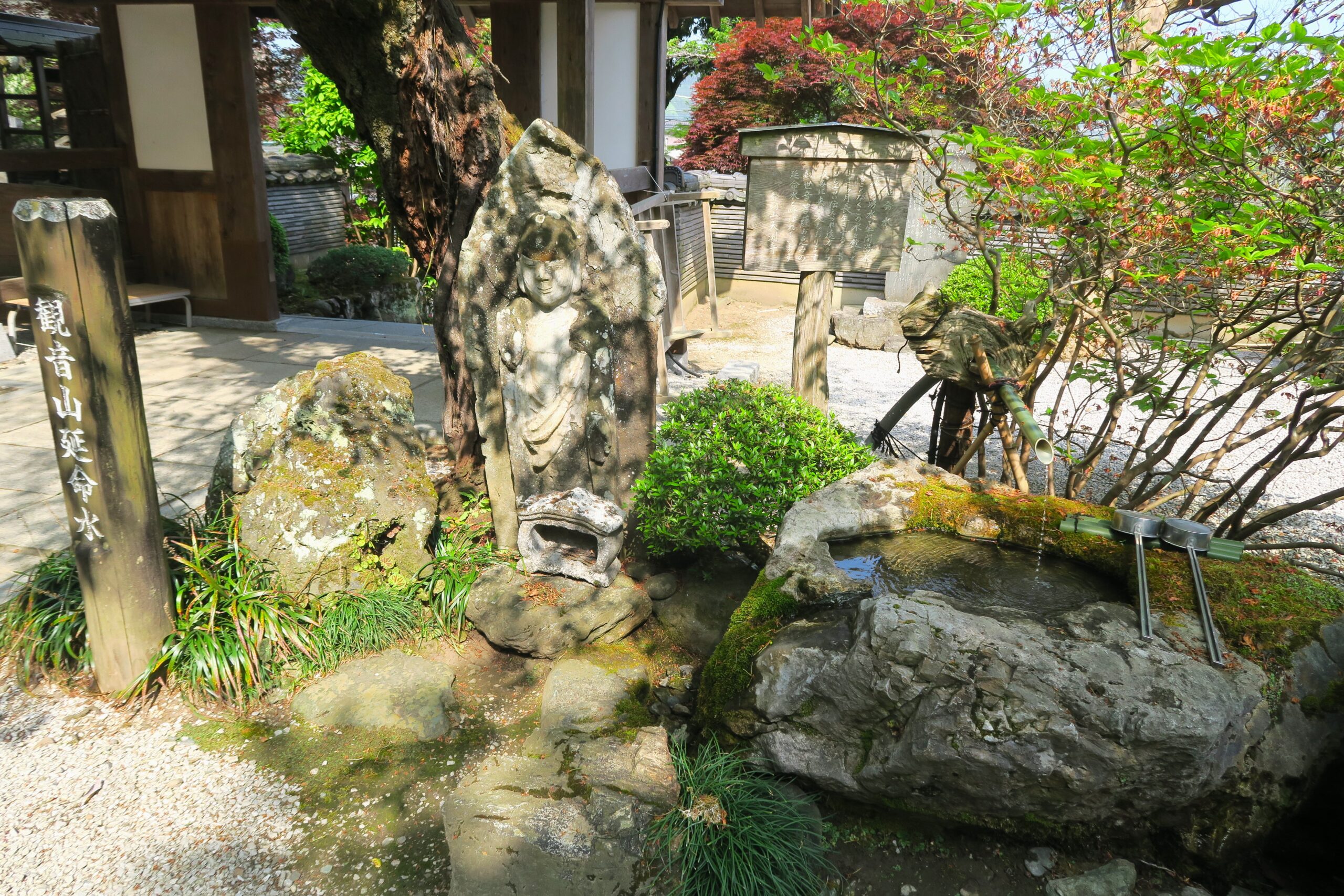 境内に湧く延命水は、自然の湧き水で年間渇水することがありません。本尊「聖観世音菩薩」の恵みの延命水と呼ばれ「ひと口飲むと33か月長生きできる」と伝わります。