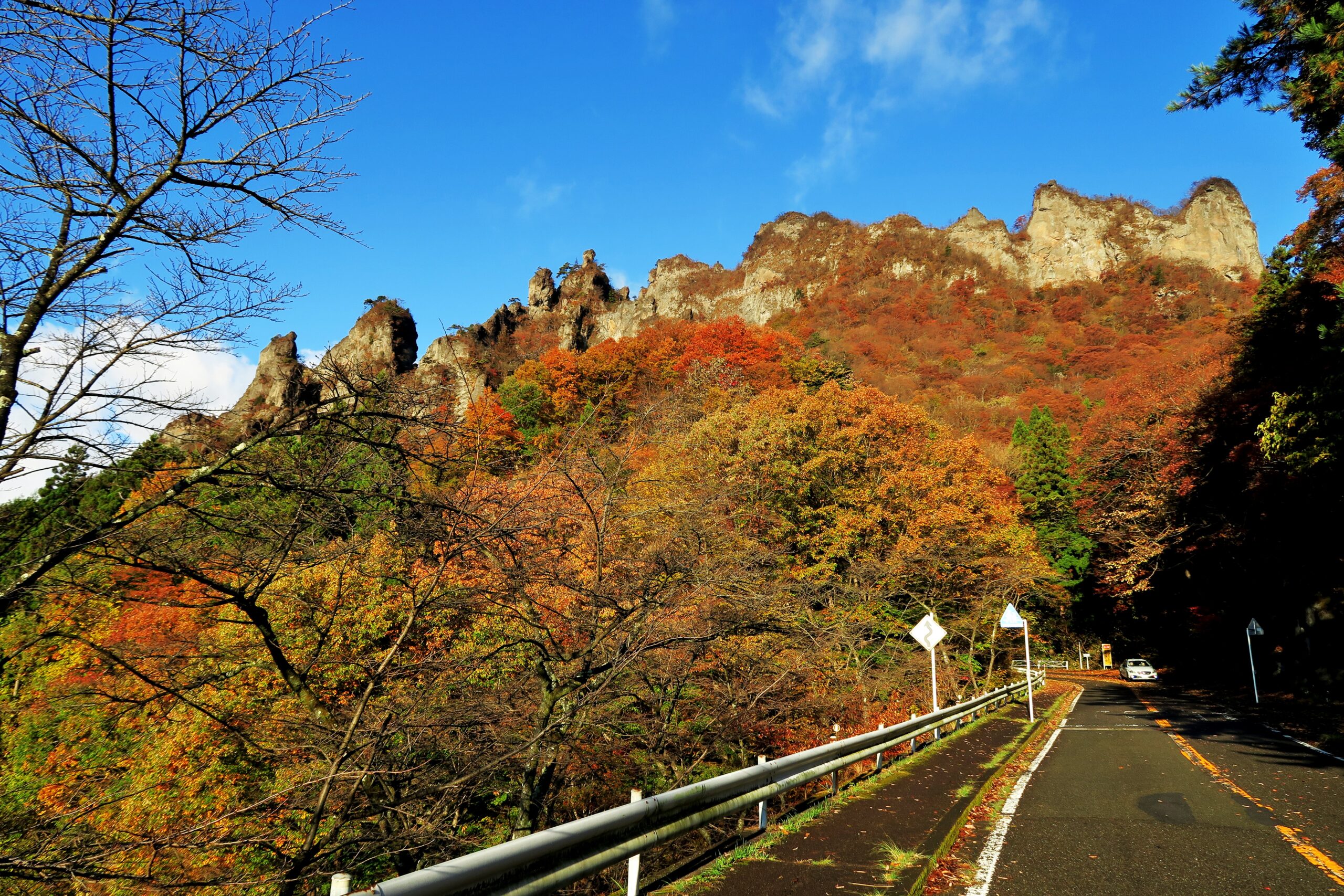 ご当地かるたの上毛かるたでは“も”は『紅葉に映える妙義山』と詠まれています。上信越道で最寄の松井田妙義ICで下り、上毛三山パノラマ街道(県道196)を走っていきます。漫画『頭文字(イニシャル)D』のモデルにもなったクネクネした峠道です。