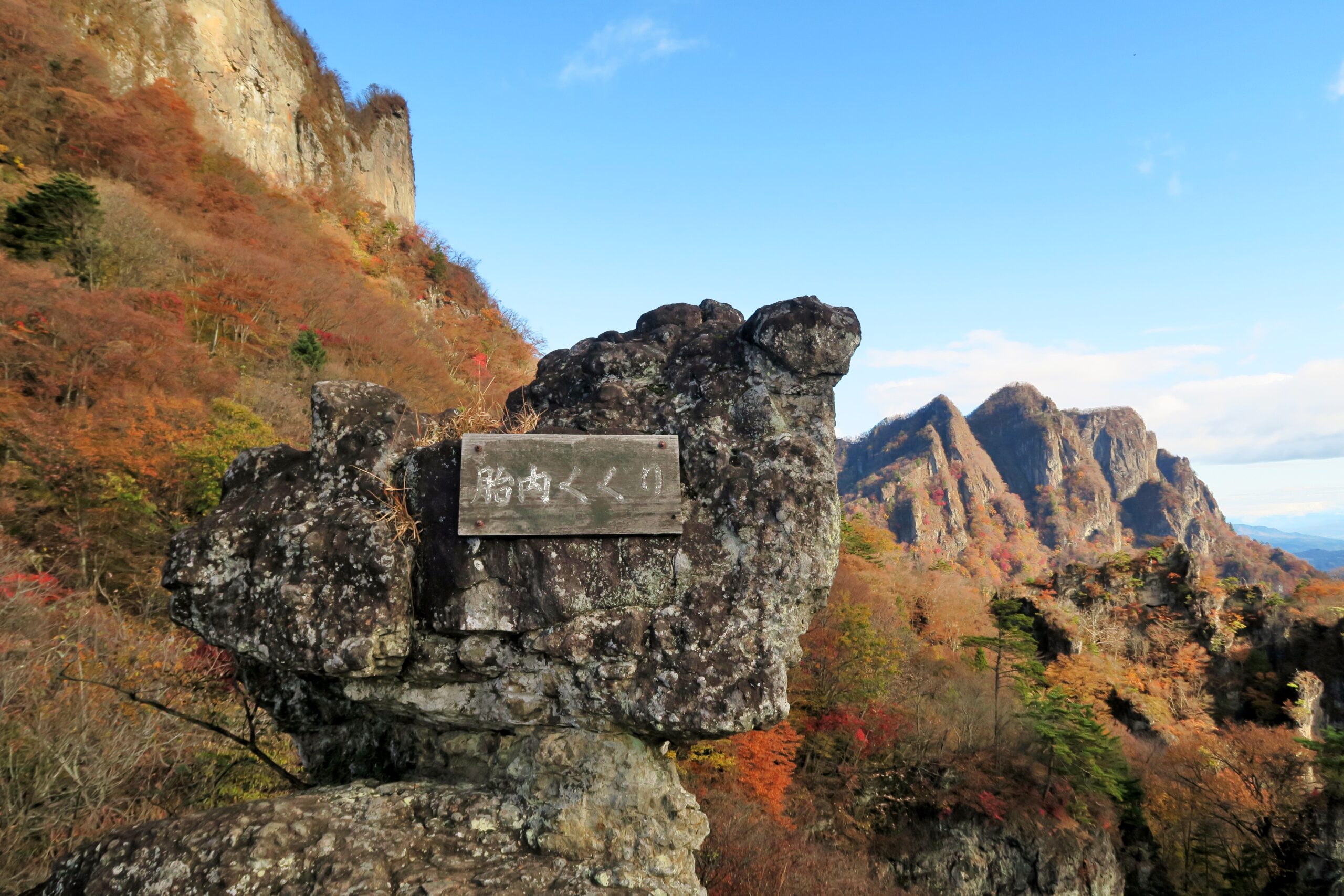また左手には「胎内くぐり」があります。岩の真ん中に穴が開いていてくぐることができます。どちらも高度感が高いので無理は禁物です。