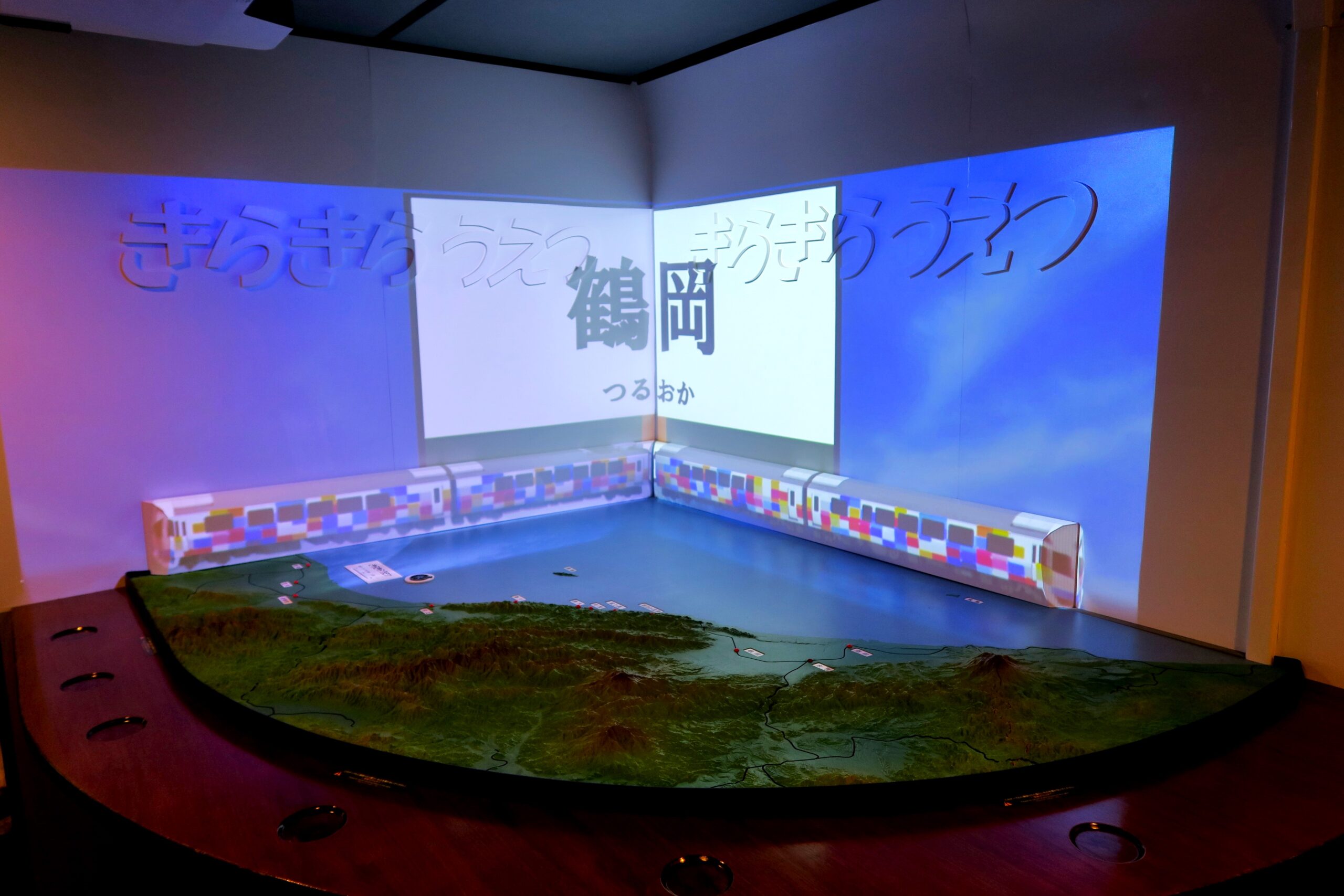 一部に「きらきら情報コーナー」があり、きらきらプロジェクションマッピングで沿線の観光ポイントや映像を楽しむことができます。