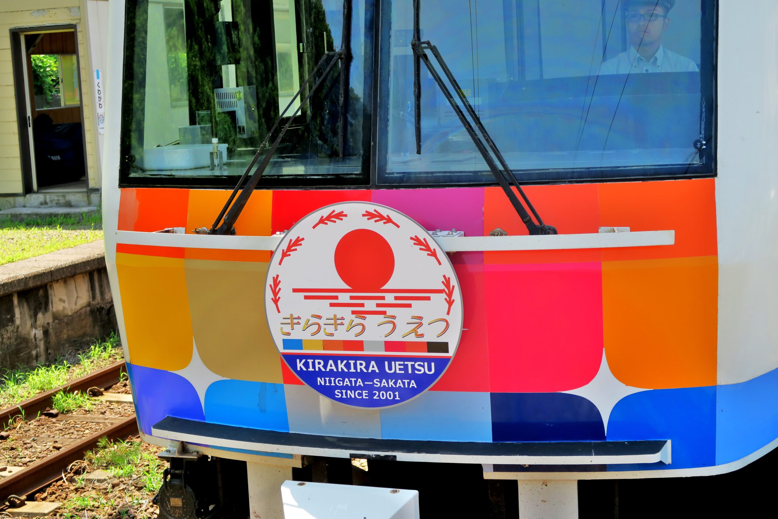 「きらきらうえつ」は、羽越本線(白新線)に村上、あつみ温泉、鶴岡、酒田を訪れる観光客に楽しんでいただくため、着地型のジョイフルトレインとして登場しました。雪解けに心弾ませる春、笹川流れが青く輝く夏、金色の夕日が時を忘れさせる秋、日本海に波の花が舞う冬と新潟・庄内のきらきらした魅力があふれる景色の中を2001年11月のデビューから日本海の美しさとともに「乗って満喫♪降りて満足♪」のキャッチコピーで走り続けてきました。
