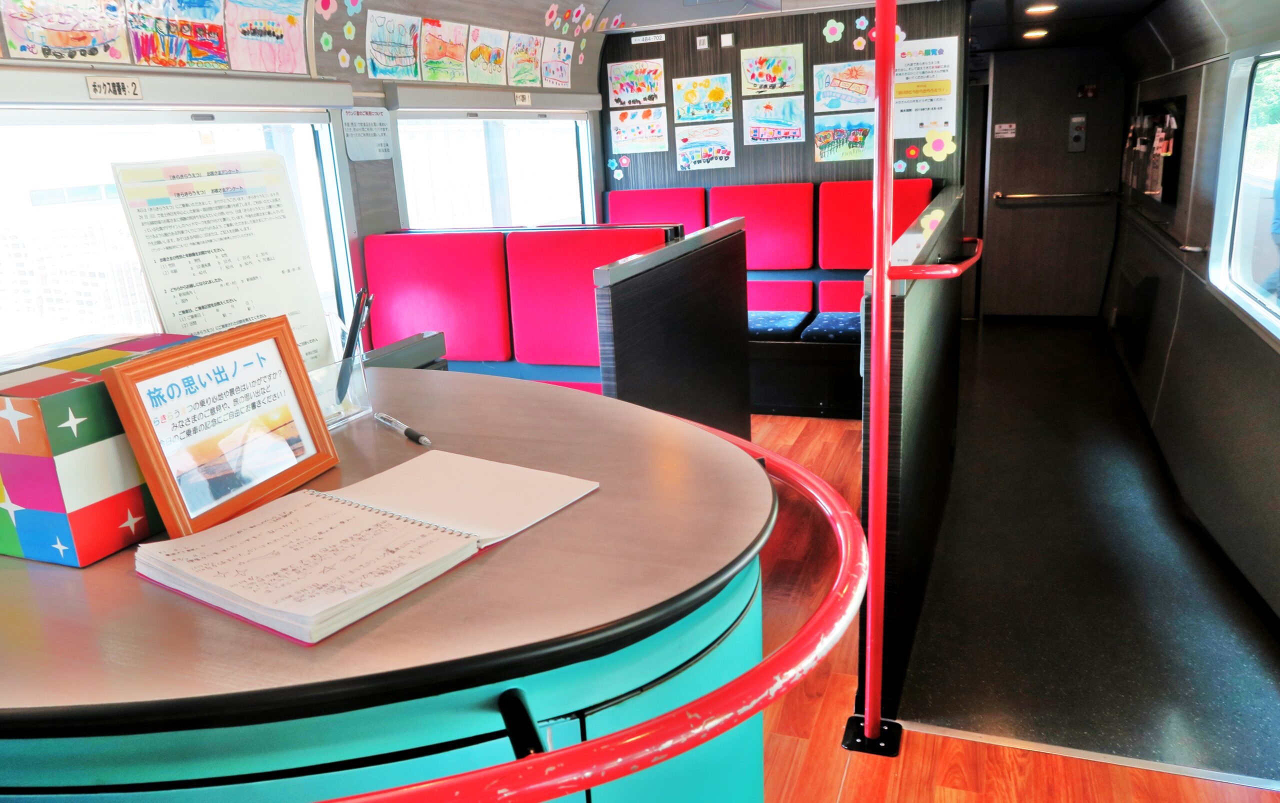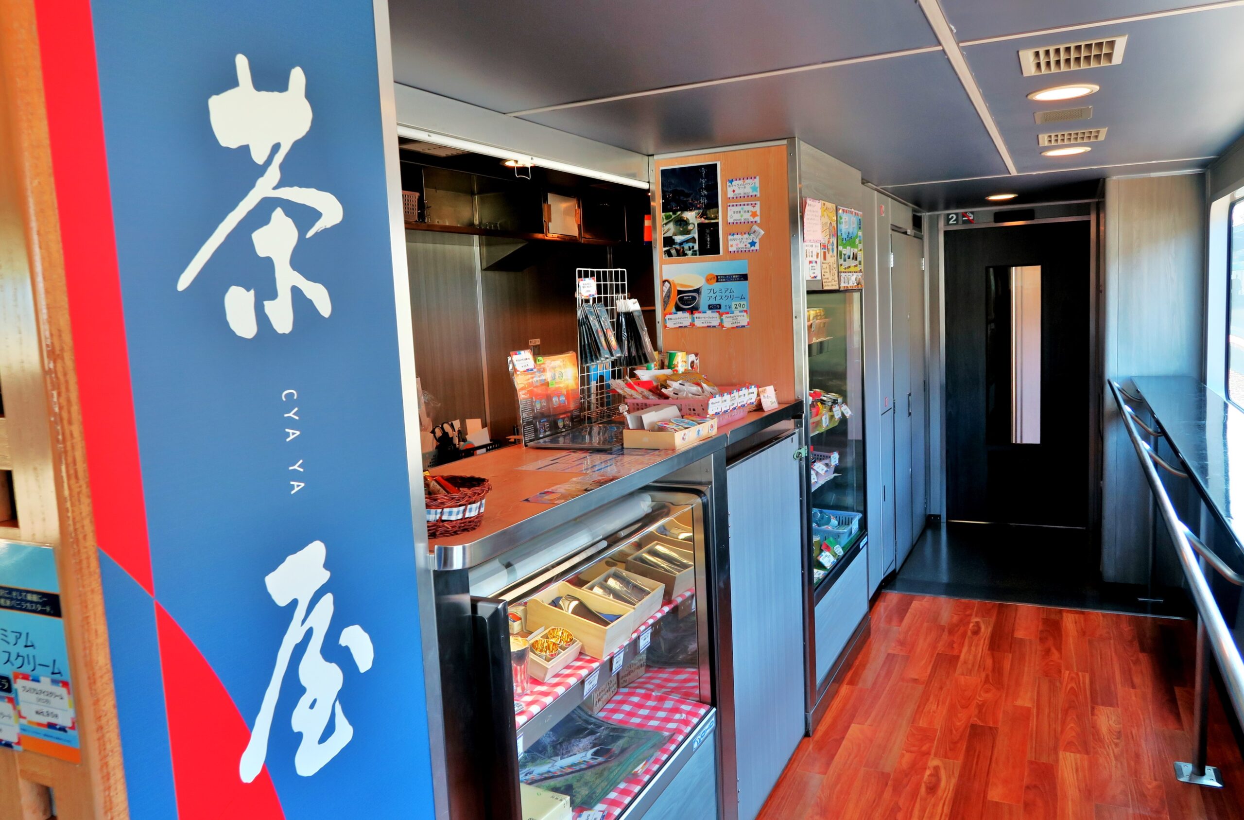 2号車はラウンジカーで、「茶屋(売店)とラウンジスペース」が設けられていています。
