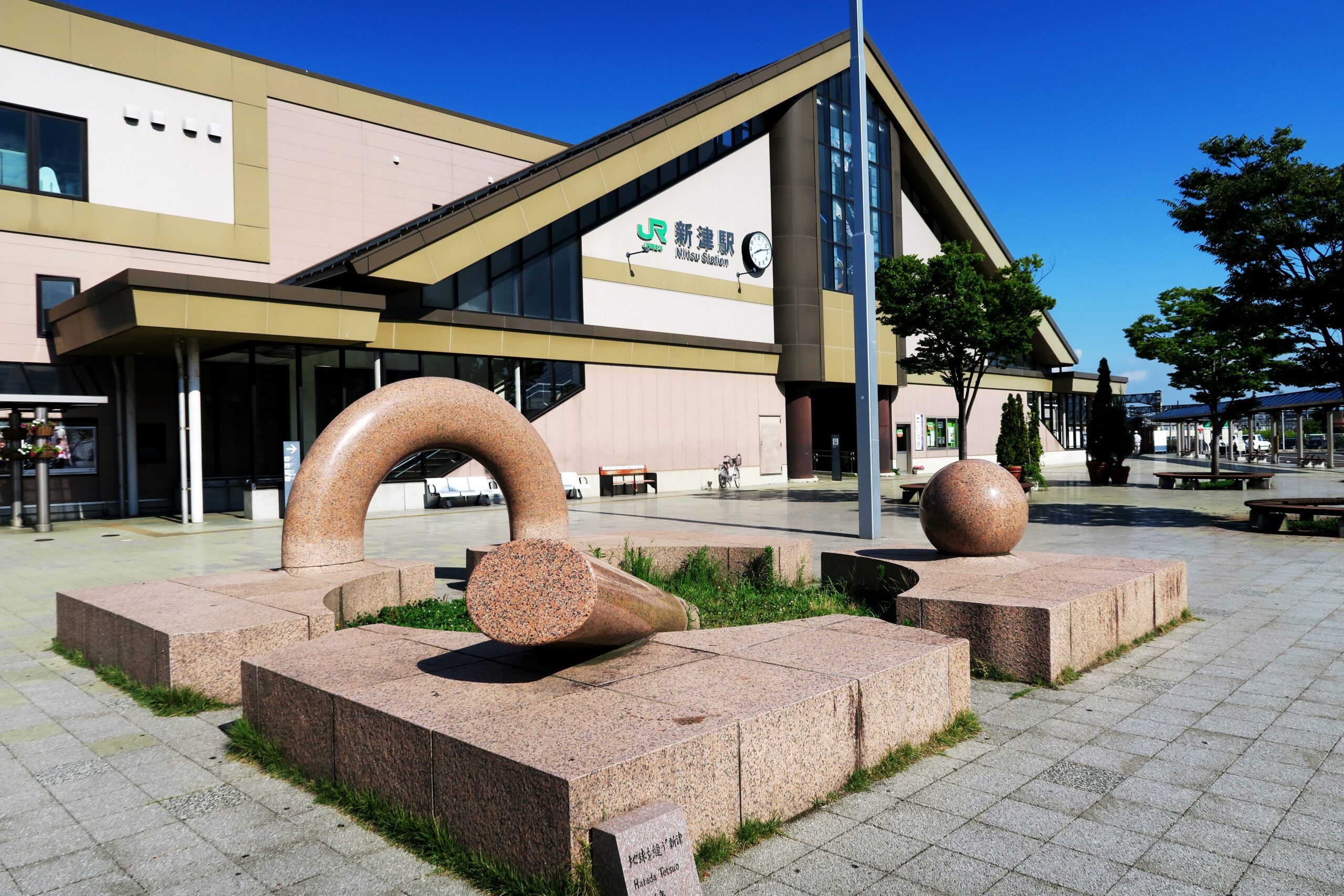 海が視界からされば、今度は山。鶴岡駅近辺から大きな車窓に鳥海山の姿を望めば、酒田も間近です。鶴岡駅、余目駅と停車し13:14に終点・酒田駅に到着です。折り返しの新潟行き「きらきらうえつ」は酒田駅16:10発なので、それまでの約3時間を酒田の町を散策することにします。酒田駅で無料のレンタル自転車を借りていざ出発です。