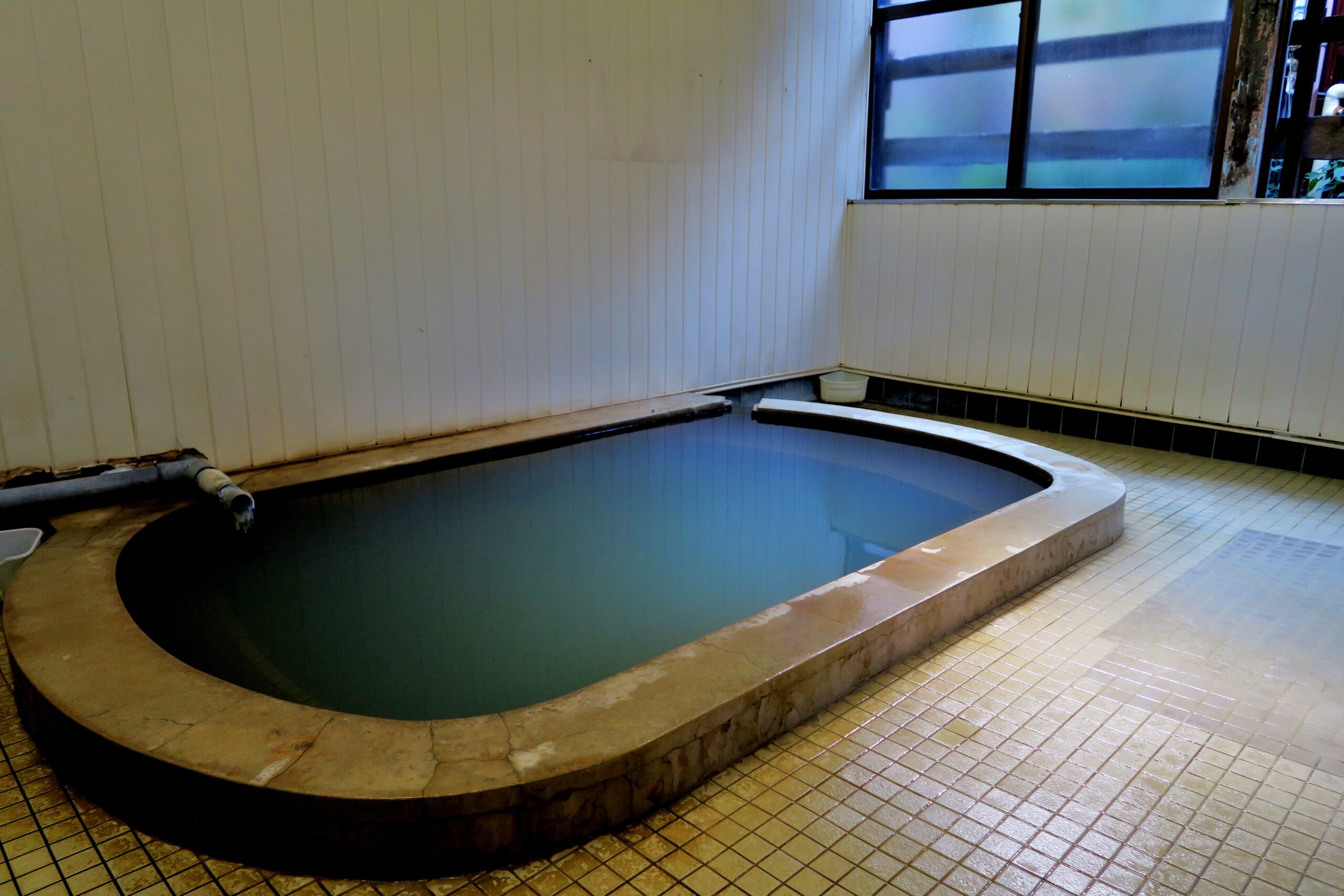 恐る恐る浴室に入ると、プーンと強烈な匂い、「石油の匂いだ!」とすぐに分かる匂いがしてきます。新津は石油の町として知られ、20世紀初頭には石油ラッシュでにぎわったところです。新津温泉も石油を採掘しようとしたところ温泉がでたというところです。浴槽に身を浸すと、ぬるめの湯は石油臭に反して柔らかで肌にまとわりつくようなで肌触り、泉質はナトリウム-塩化物・炭酸水素塩泉と塩味と苦みがあります。5~6人も入ればいっぱいになる浴槽ですが、ひっきりなしに客が入ってきます。とにかくこんな石油臭のある温泉は初めての体験です。