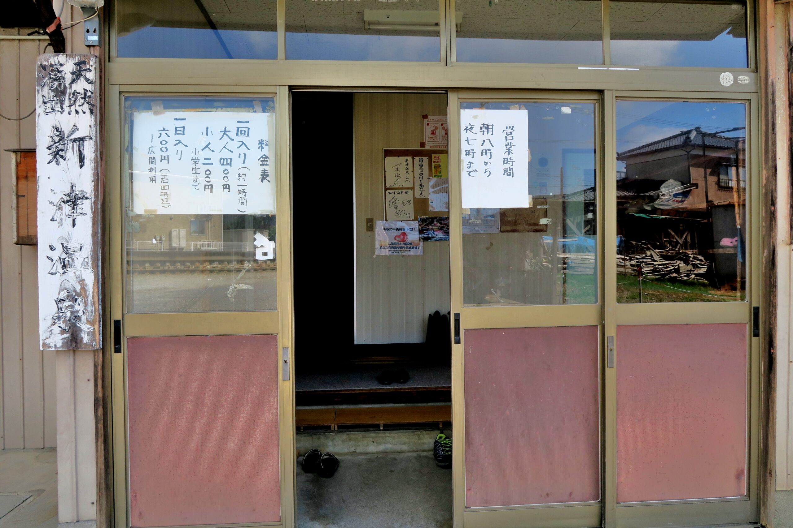 外観が工事現場の事務所のような建物があり、半信半疑で近づくと「新津温泉」の文字が書かれた看板が掲げられています。玄関で靴を脱ぎ事務所のような部屋にいる管理人さんに入浴料400円を払い、湯治場のような薄暗い廊下を歩いた先に浴場があります。