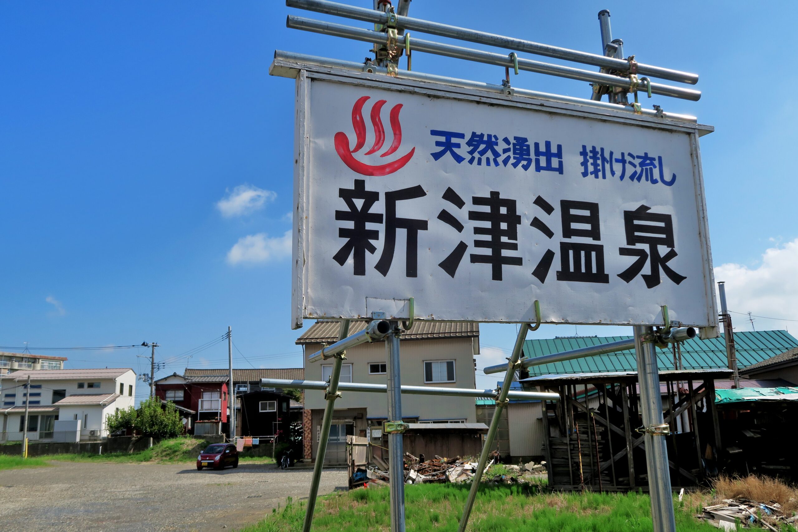 ここから駅前の商店街を抜け、歩いて15分ほどの住宅地の中にあるのが「新津温泉」です。