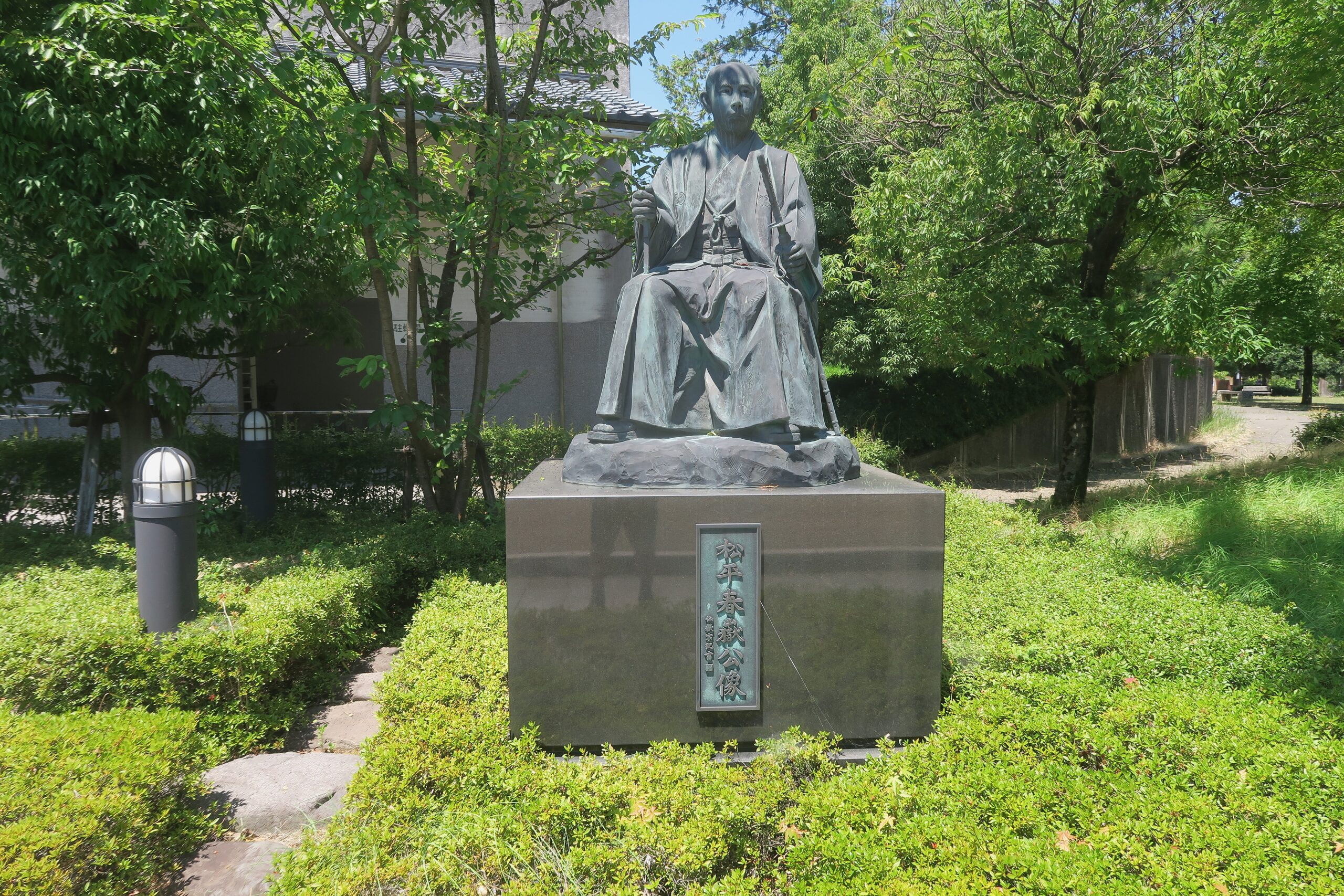養浩館庭園に隣接する福井市立郷土歴史博物館のそばに立つ松平春嶽像。松平春嶽は徳川幕府第11代将軍家斉の弟で田安徳川家3代当主徳川成匡の八男として生まれ、11歳で越前松平家福井藩16代藩主となりました。
