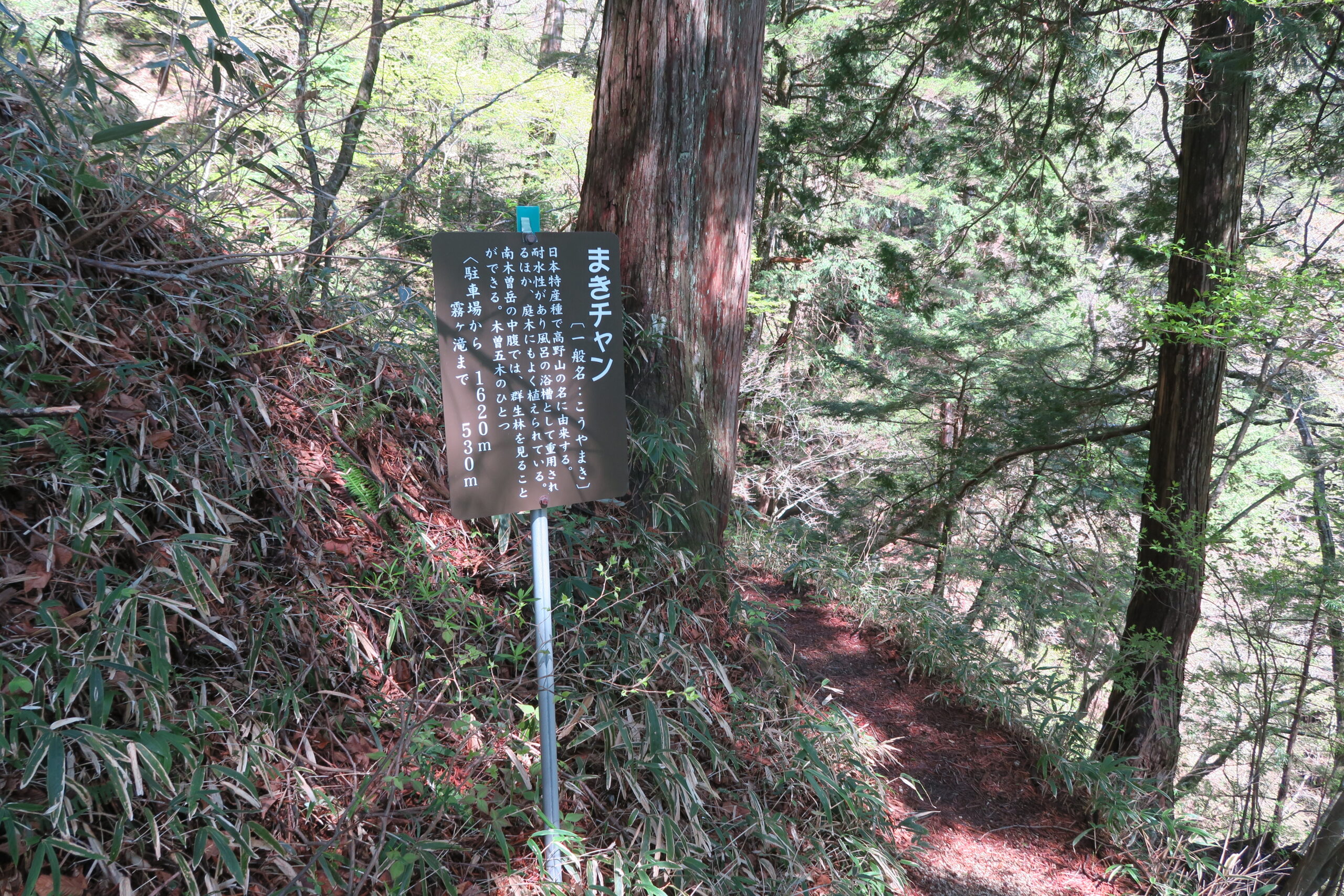 さらに210m進むと、コウヤマキの「まきチャン」。