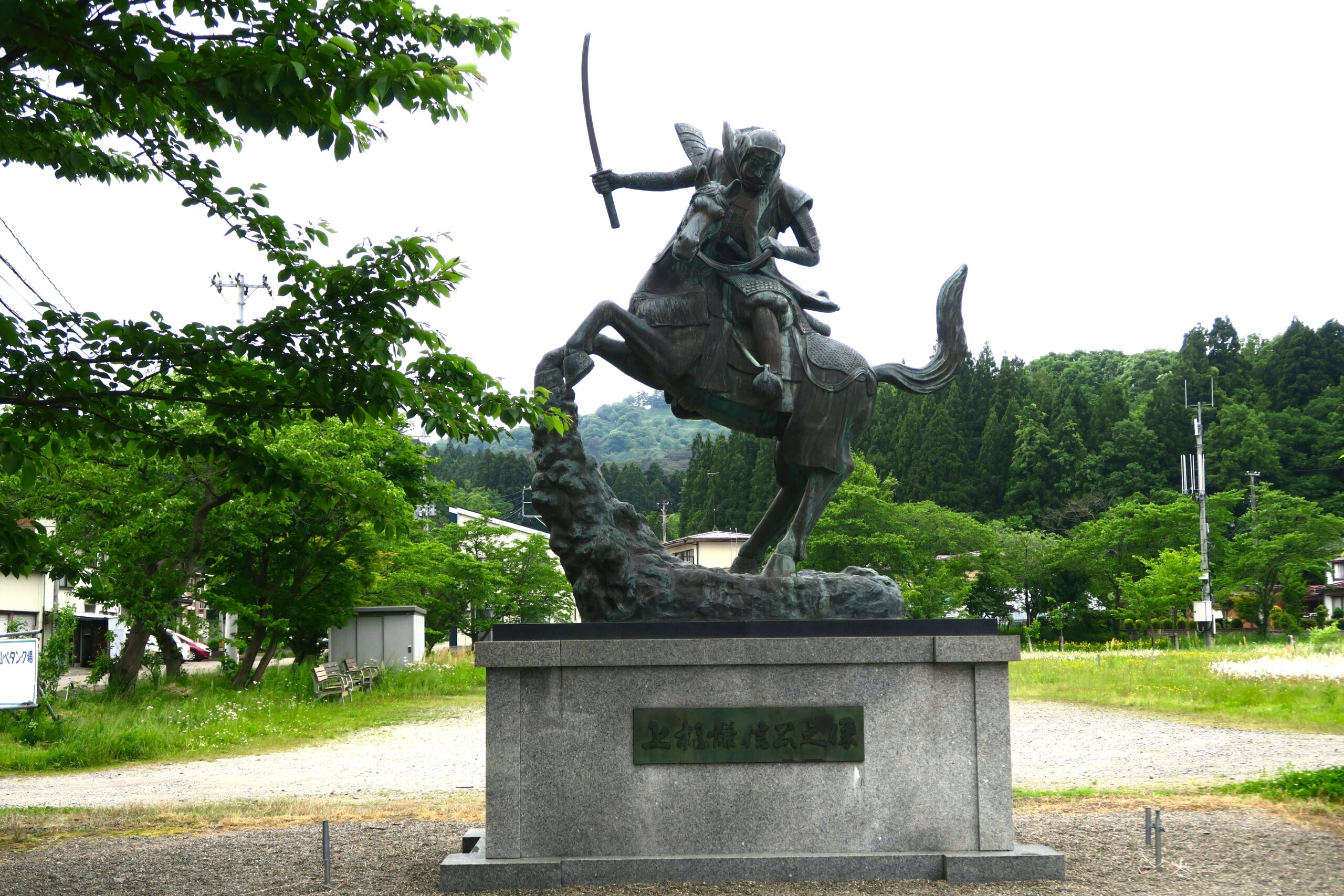 最後に大手道駐車場から至近距離にある「上越市埋蔵文化財センター」で今話題の御城印(1枚300円)を記念に購入して締め括りにします。春日山を背にした上杉謙信の騎馬像が置かれています。