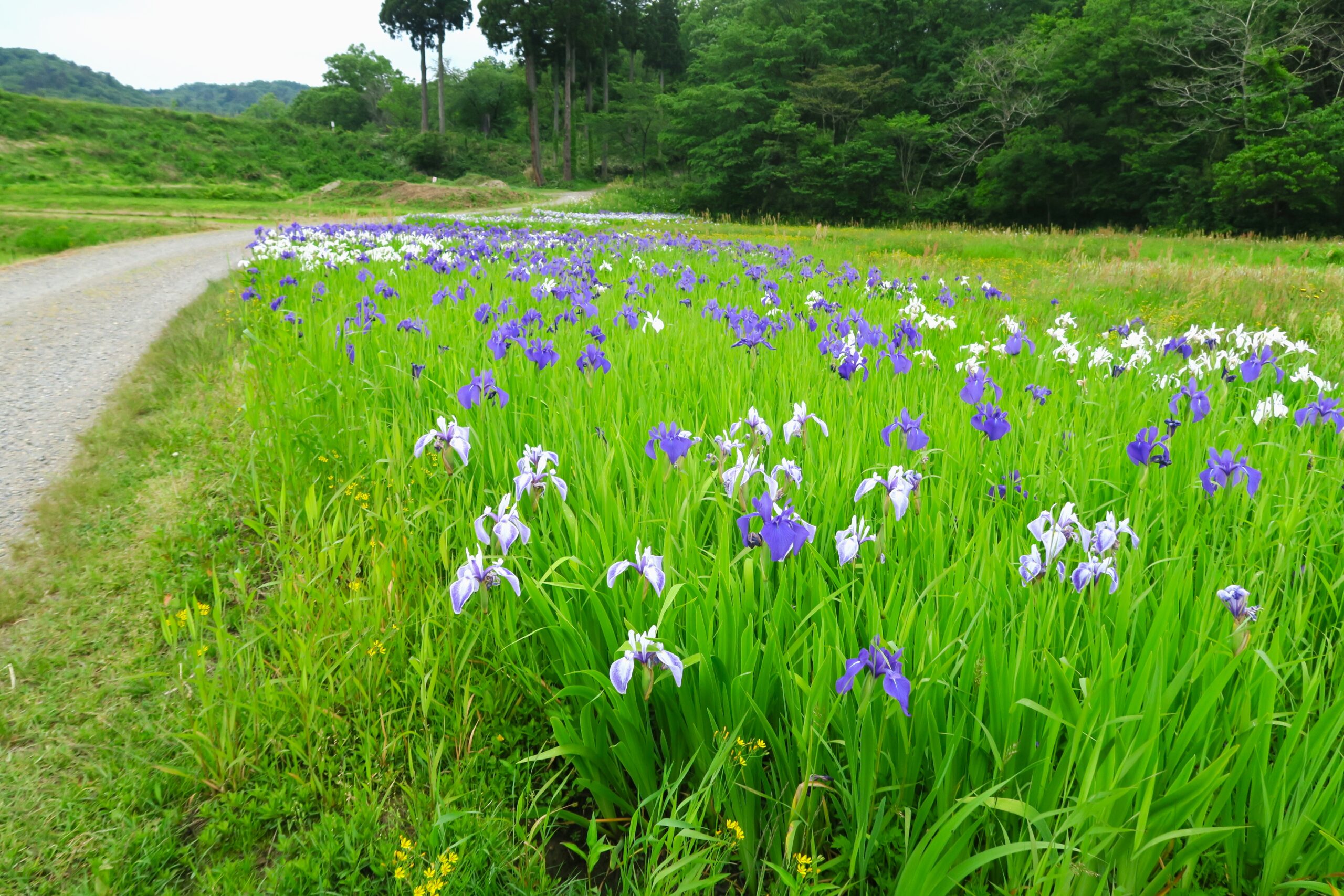 大手道からの登城道沿いには春先、カキツバタが彩鮮やかに群生しています。