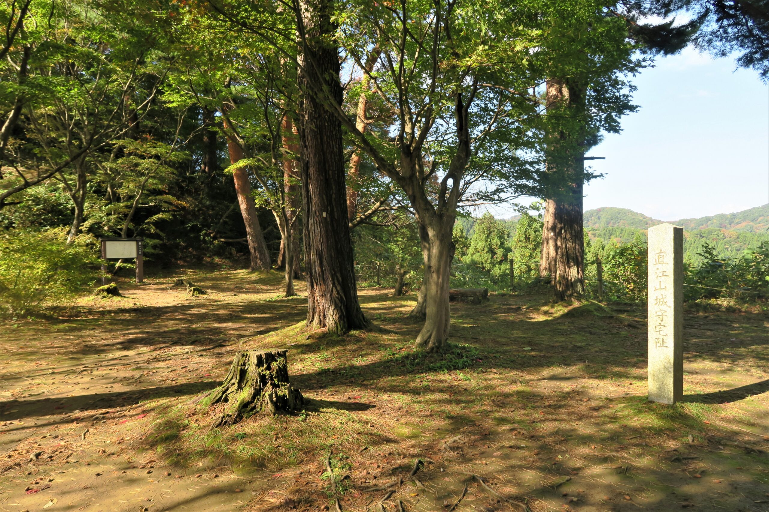 さらに5分、城の入口にあたる「虎口」から上ると上下三段の郭になった上杉家の重臣「直江屋敷跡」にでます。大河ドラマ「天地人」の主人公・直江山城守兼続の屋敷跡です。本丸に向かって右手が愛宕谷、左手が但馬谷となっている尾根上にあります。