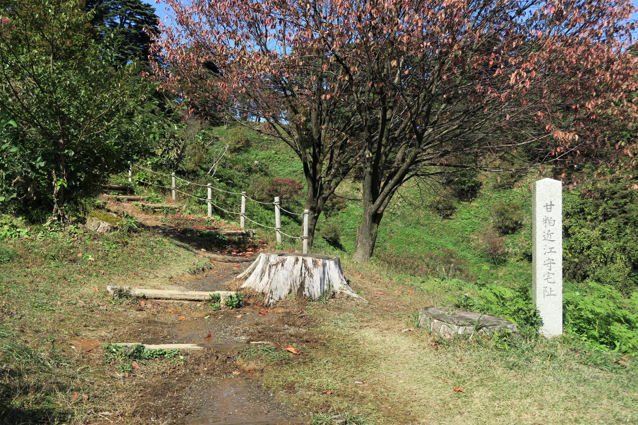 御成街道と銅像左手からの登り道との合流地点には、重臣「甘粕近江守宅跡」があります。あとは謙信公銅像から来た道を愛宕山公園まで戻ります。
