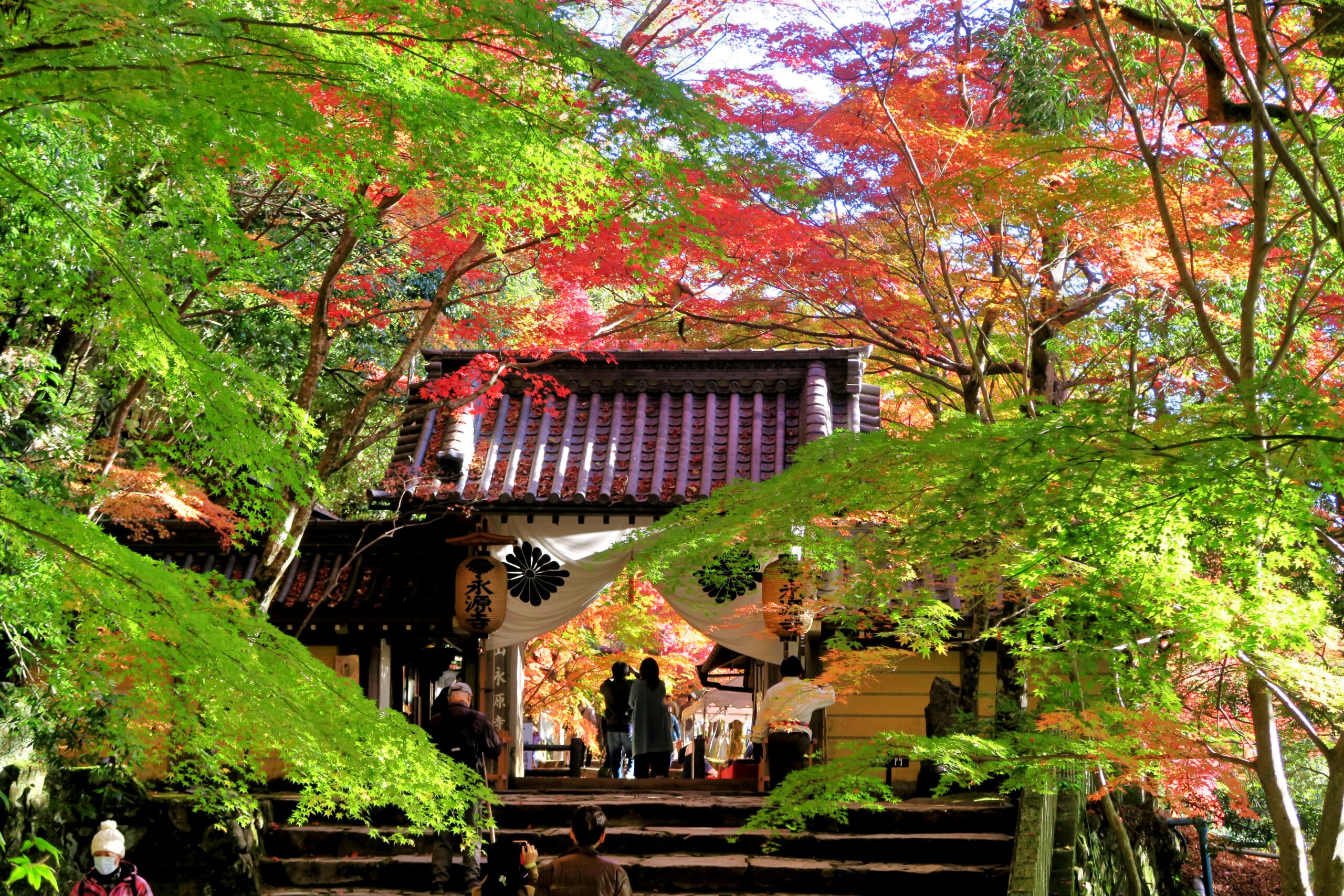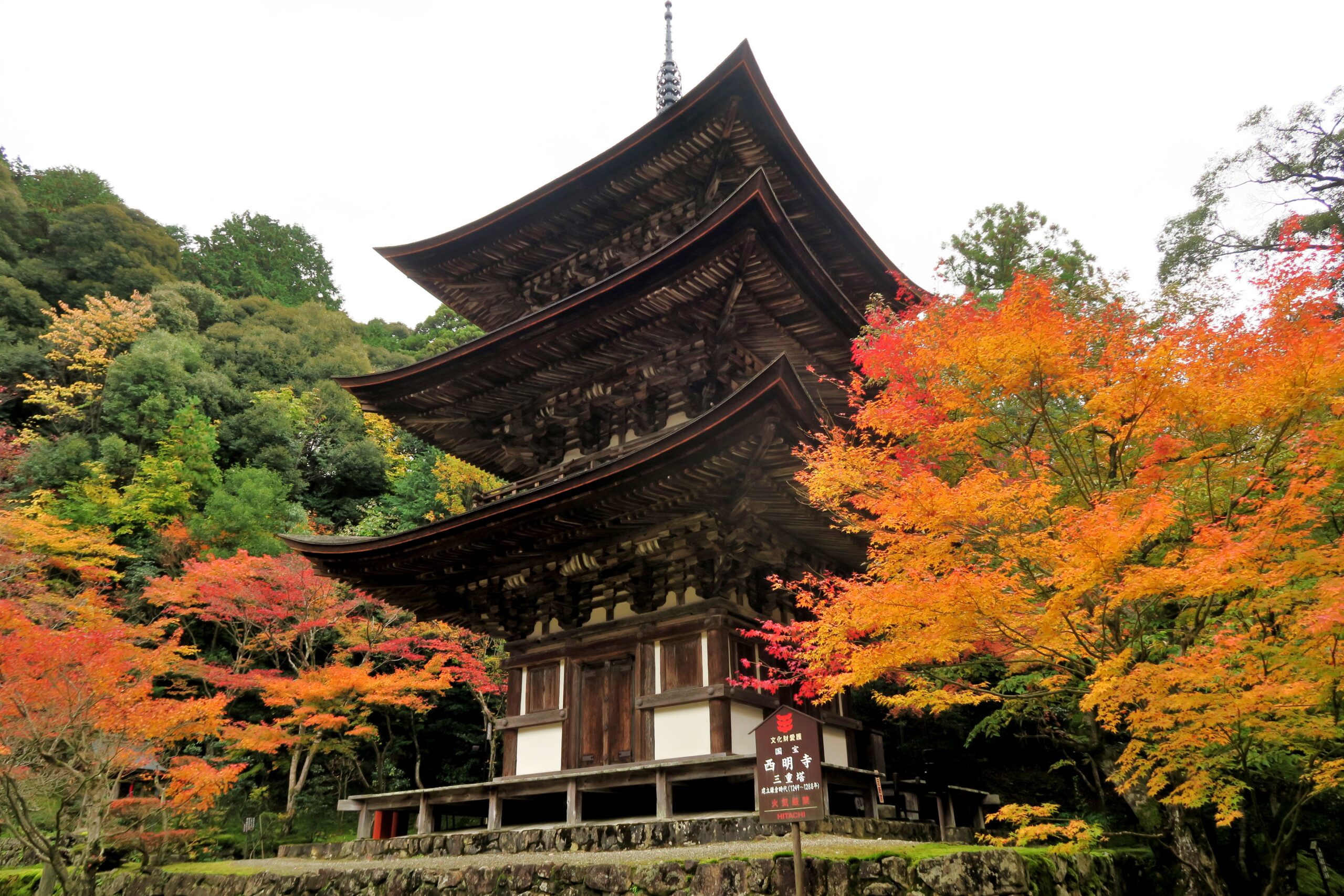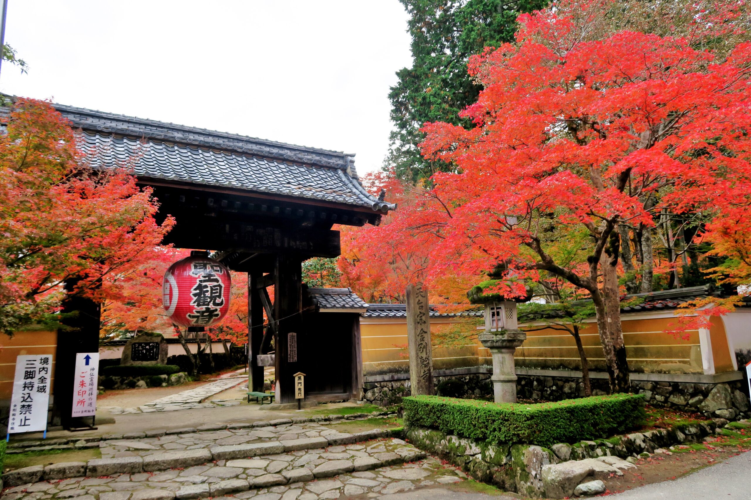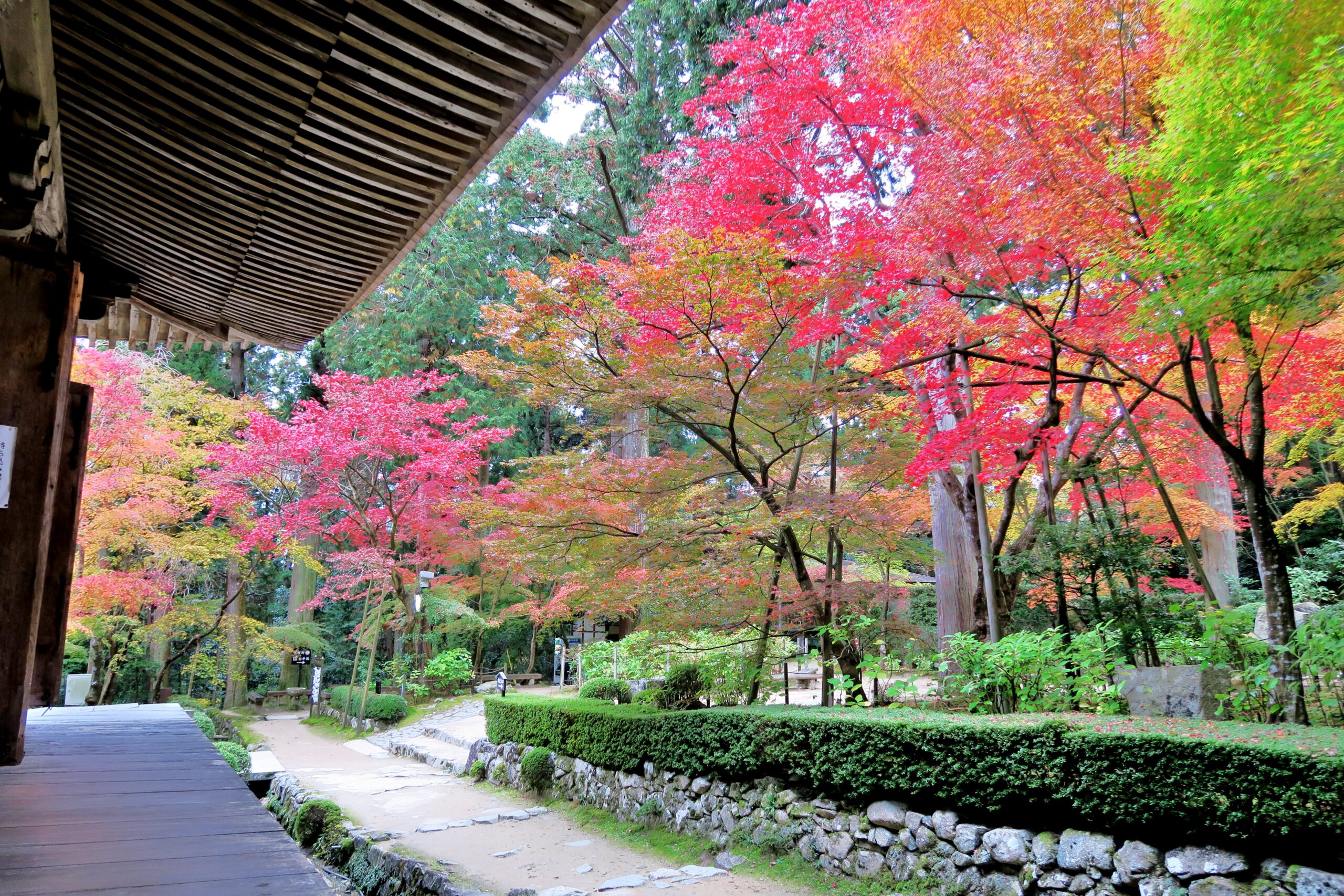 平安時代初期の承和元年(834)三修上人が仁明天皇の勅願により開創され、 「日本100の古寺」の中に選ばれた天台宗の古刹です。最盛期の平安時代には、17の堂と300の僧坊を数えたといわれる。織田信長によって焼討ちされましたが、国宝第一号指定の本堂や飛騨の匠が釘を一本も使用しないで建てた総檜造りの三重塔、 室町時代初期建立の二天門が火難を逃れ現存していてます。歴史を今に伝える貴重な建築物と、紅葉が織り成す絶景はじっくり見ておきたいものです。