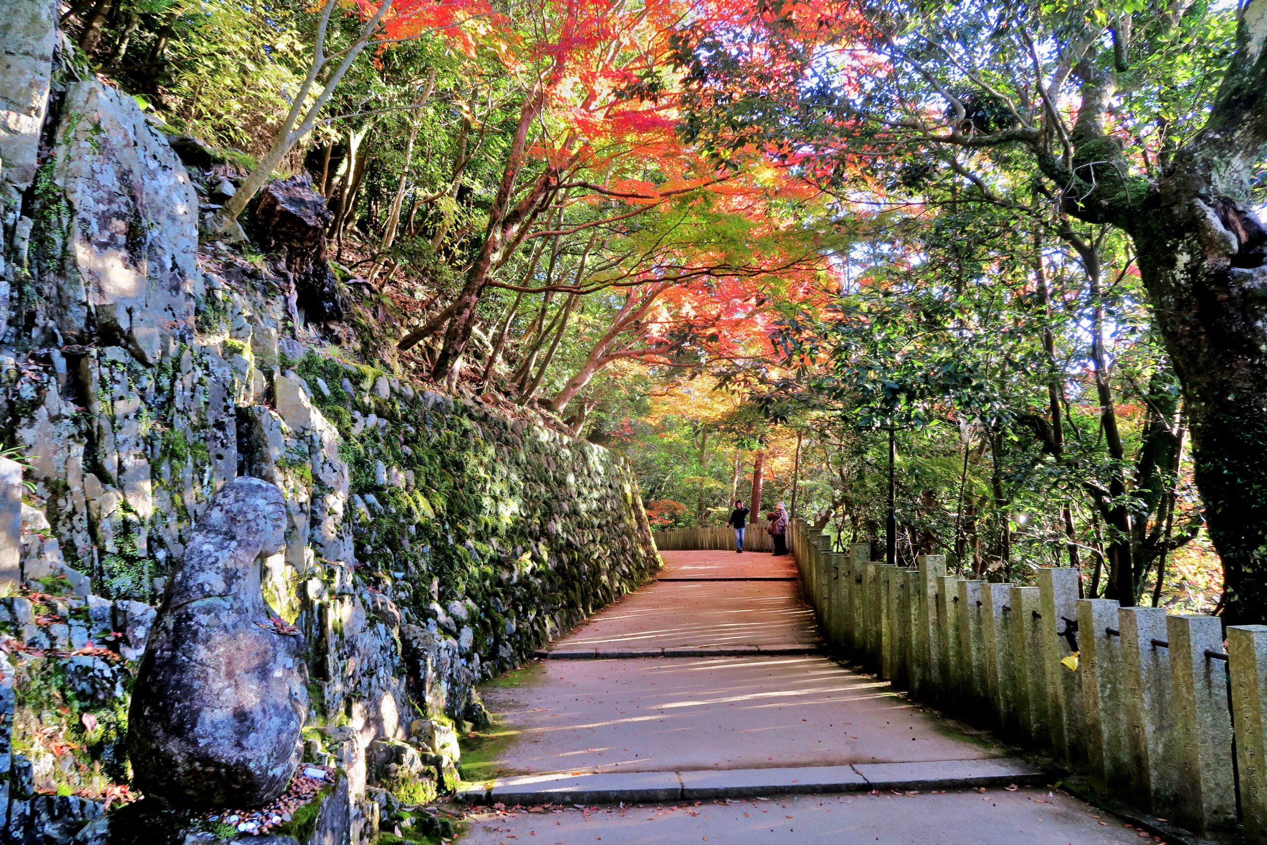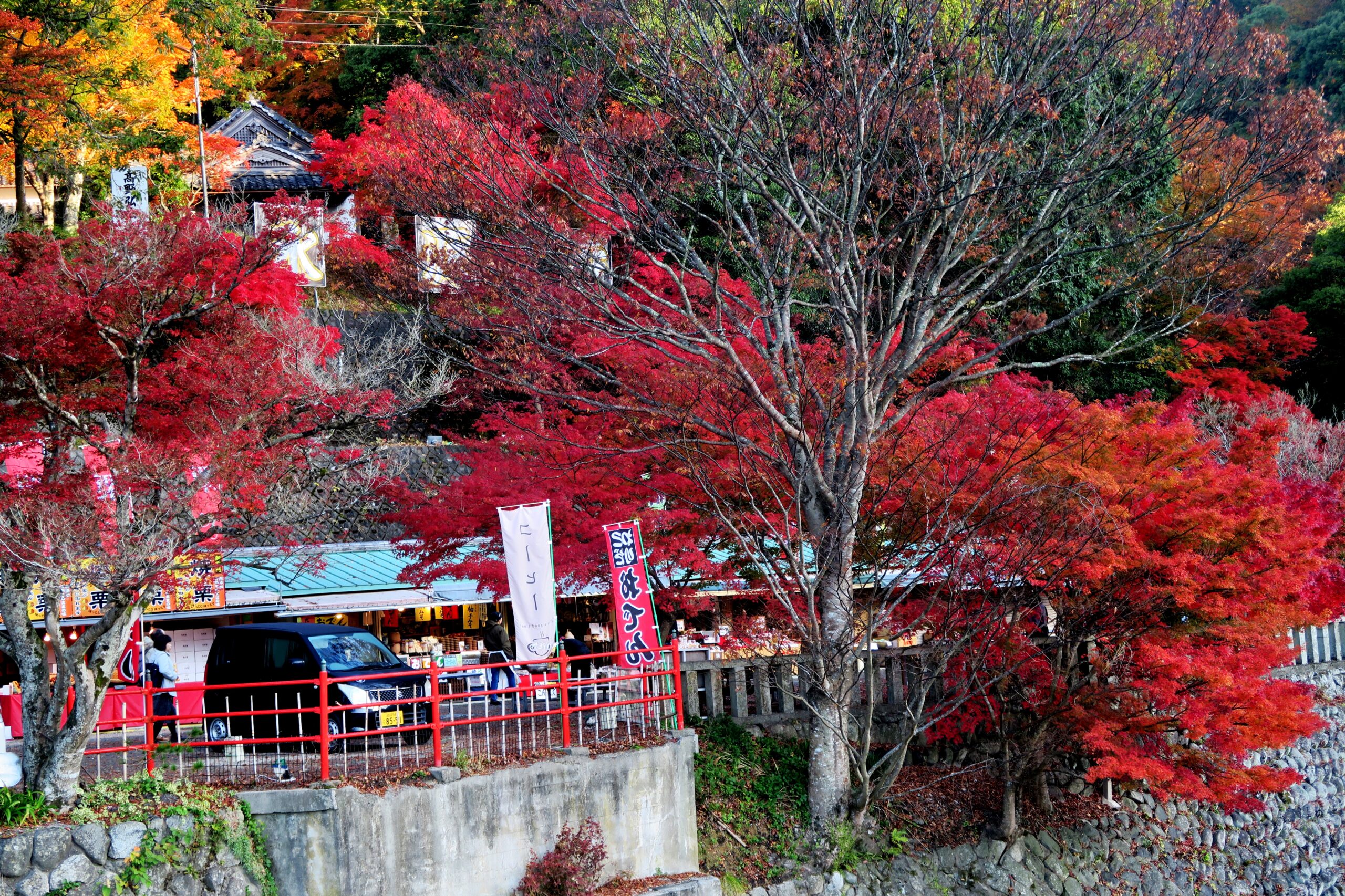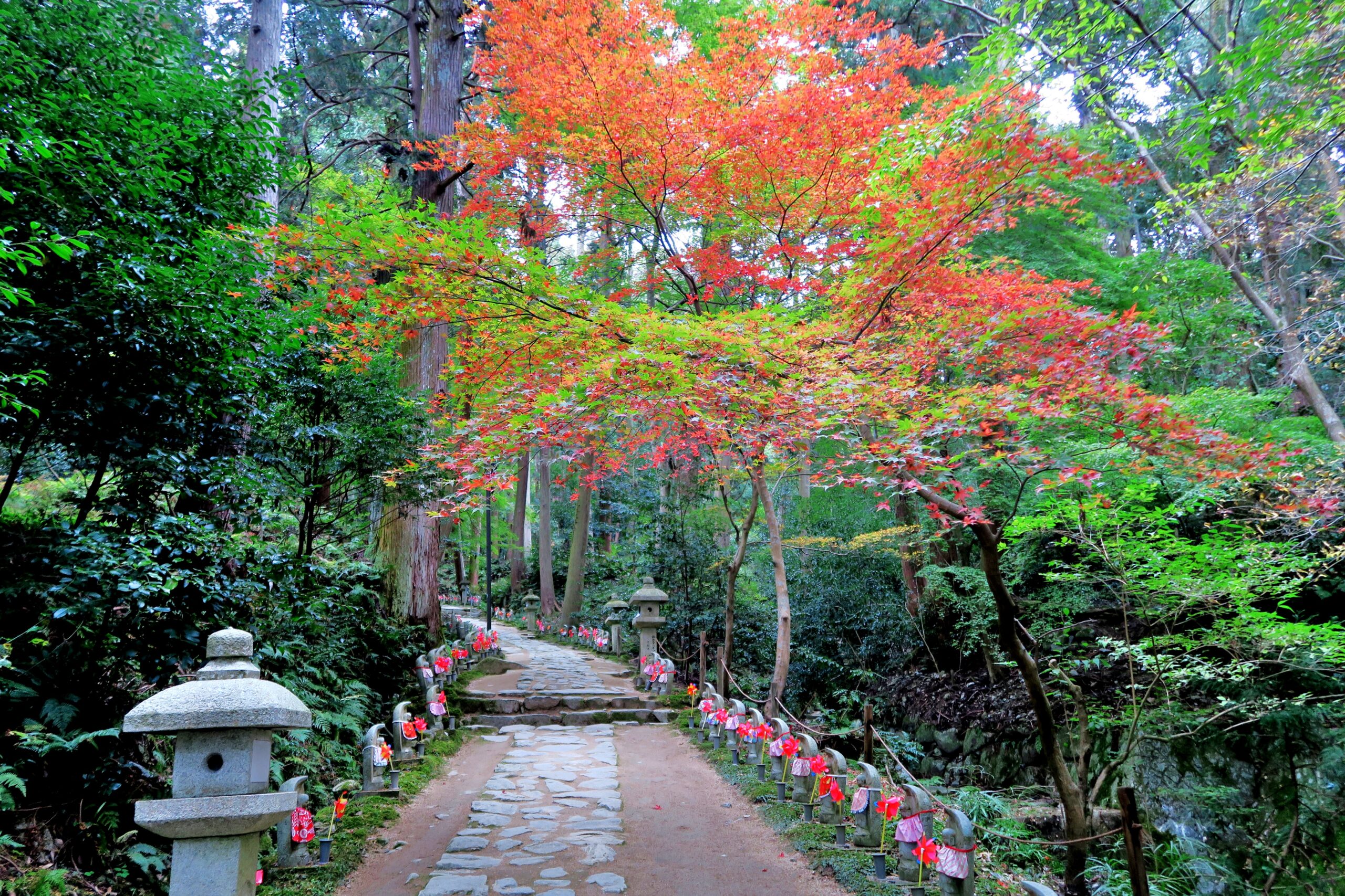 血染めのもみじ」の言い伝えは、行基が一刀三礼で観音像を彫っていたところ、ある日、観音様の木肌から一筋の赤い血が流れ出し、彫るのをやめたということから「生身の観音」と称され、境内の紅葉はその血で染められたように紅く染まったとのことです。