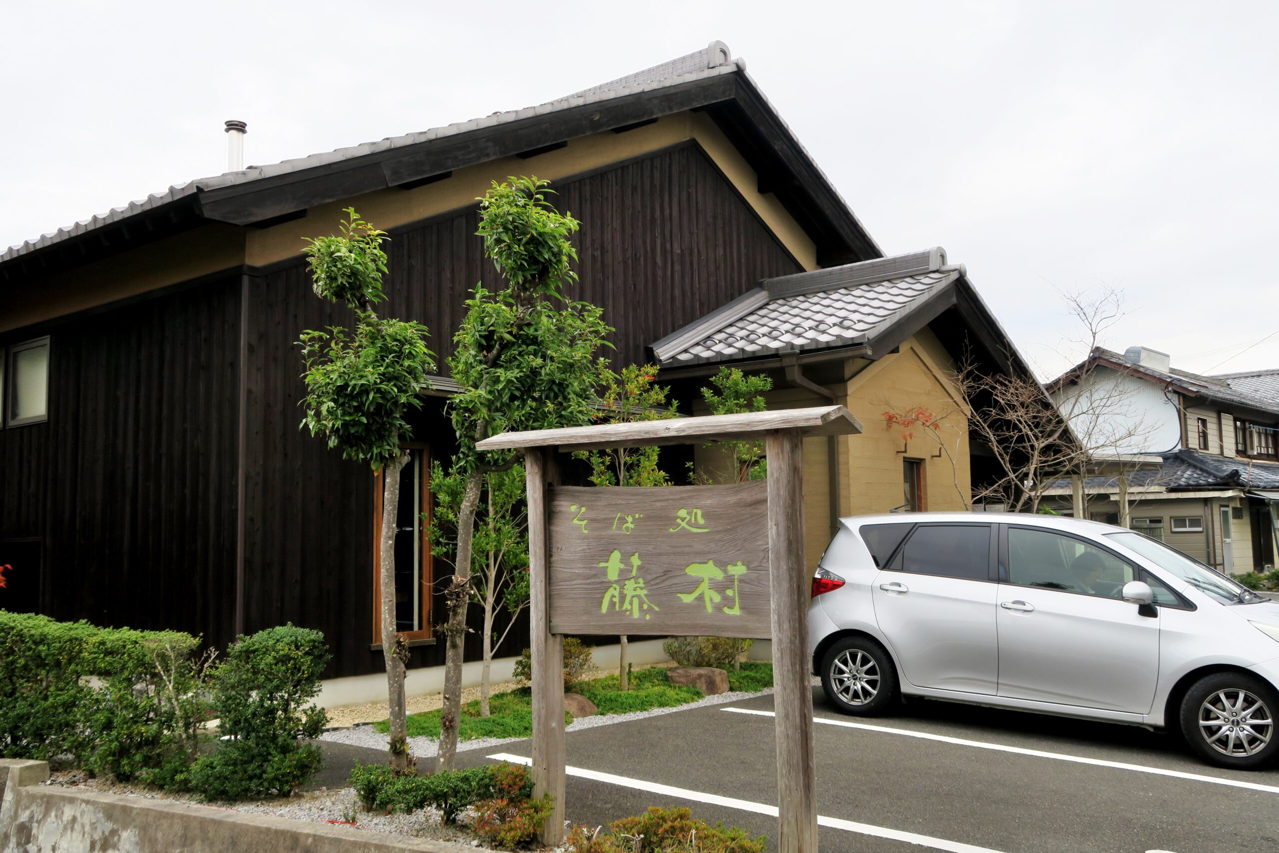 ここで昼食のオススメの一軒を。琵琶湖の南東に広がる東近江一帯は、田園地帯や近江商人の歴史を色濃く残す古い街並みがあり、どこかおおらかでのどか、心をゆるりとほぐしてくれる空気が流れていています。そんなことを感じながら車を走らせて矢先に現れる存在感のある一軒家「そば処 藤村」です。
