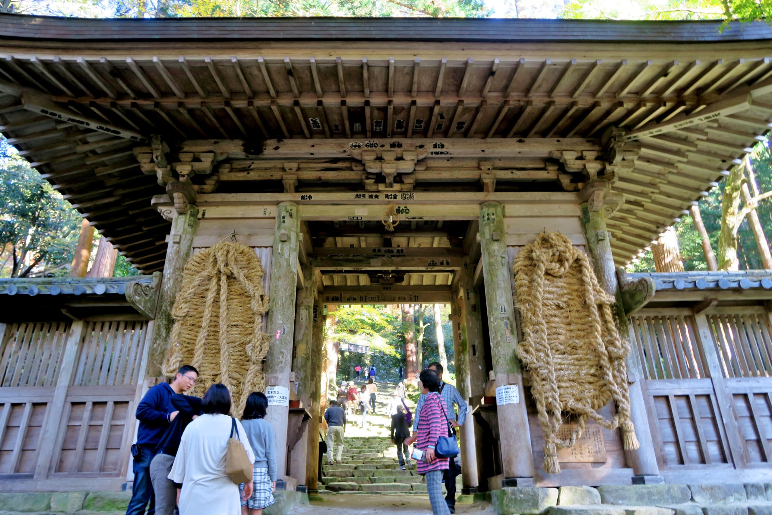 いよいよ総門をくぐります。行く先の紅葉に気持ちがたかぶります。200年前に建てられた総門は平成10年の改修が行われました。