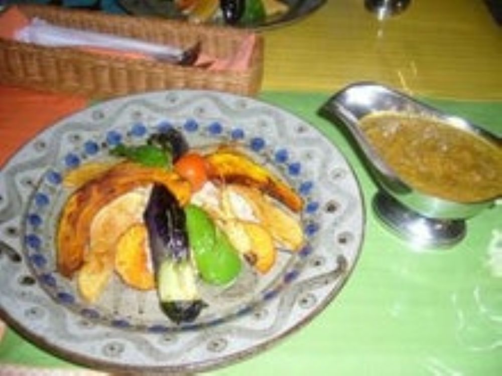 セロリ、カボチャ、なす、ピーマン、朝鮮人参、ニンジンなど7種の揚げ野菜がのったバングラディシュカレー。辛口か中辛を選ばなければならずかなり辛いとのことで中辛がおすすめ。また時間をかけてじっくり炒めた玉ねぎの甘みと丁寧にとったブイヨンノのコクが絡み合う欧風カレーもすてがたい。写真は本格バングラディッシュカレー