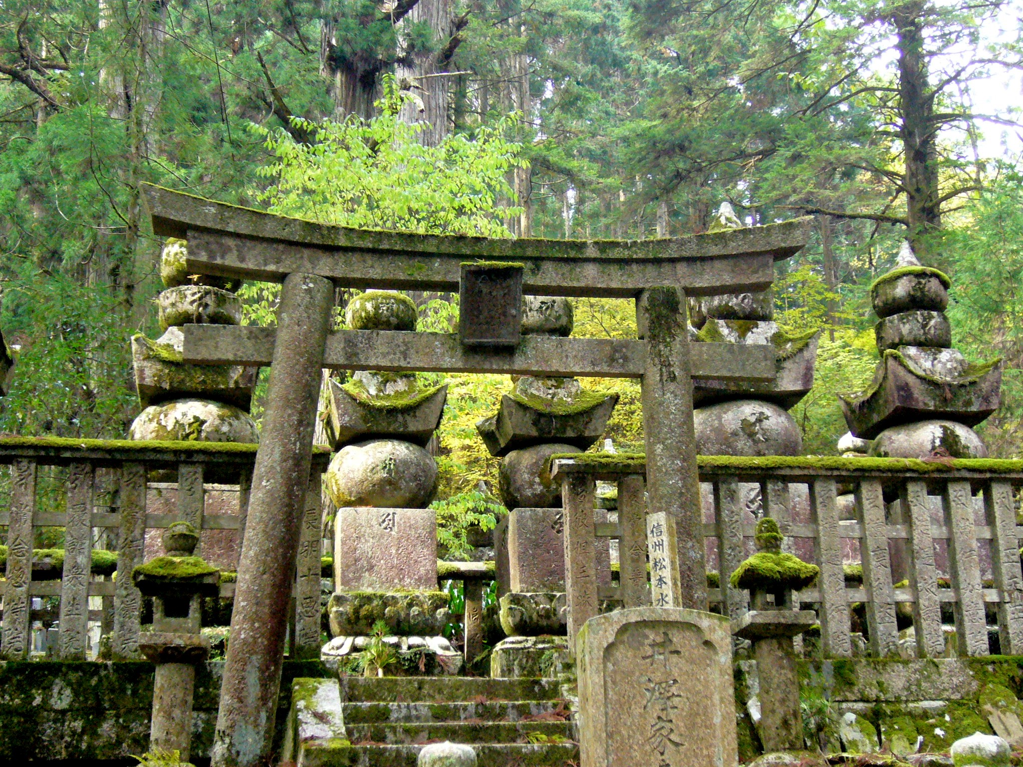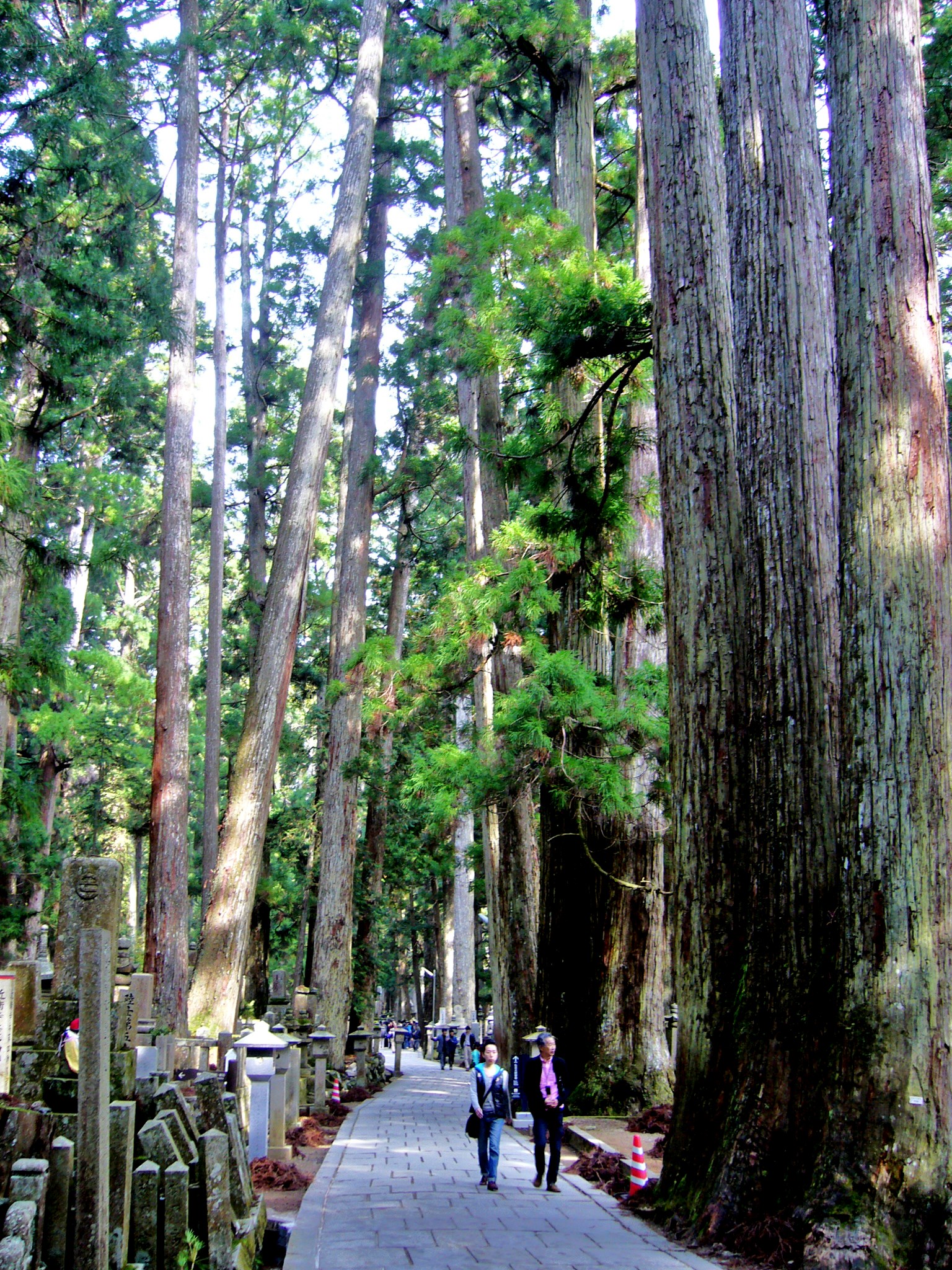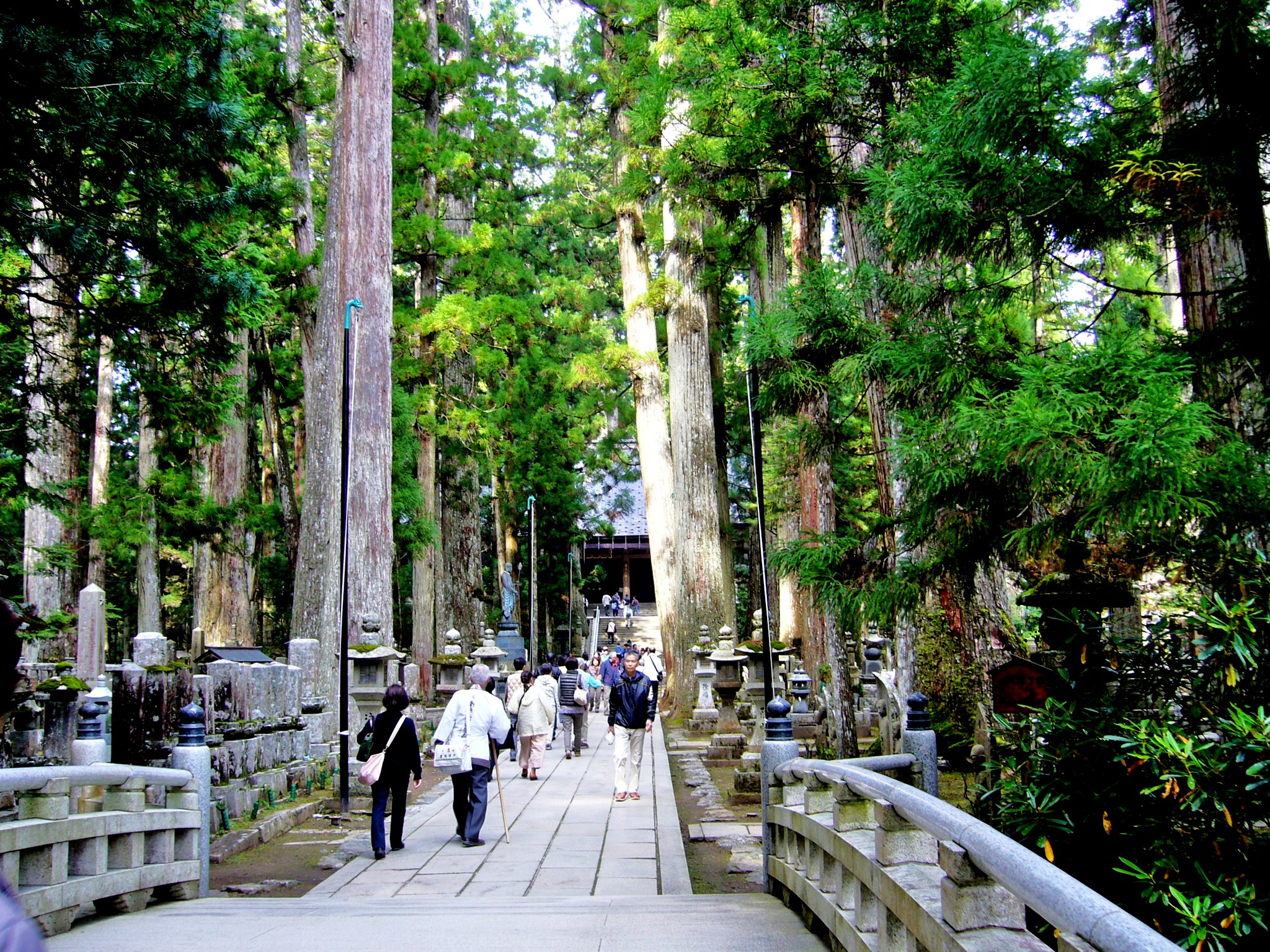 参道の両側には、樹齢何百年も経た老杉が高くそびえ、その間を埋めるように木々の間には武将から庶民まで20万基を越える墓碑や記念碑が立ち並び大師信仰の厚さをうかがわせる。厳かな空気が流れ、歩みを進めるごとにその空気が濃くなるように、ここが神聖な場所であることをひしひしと感じとれます。