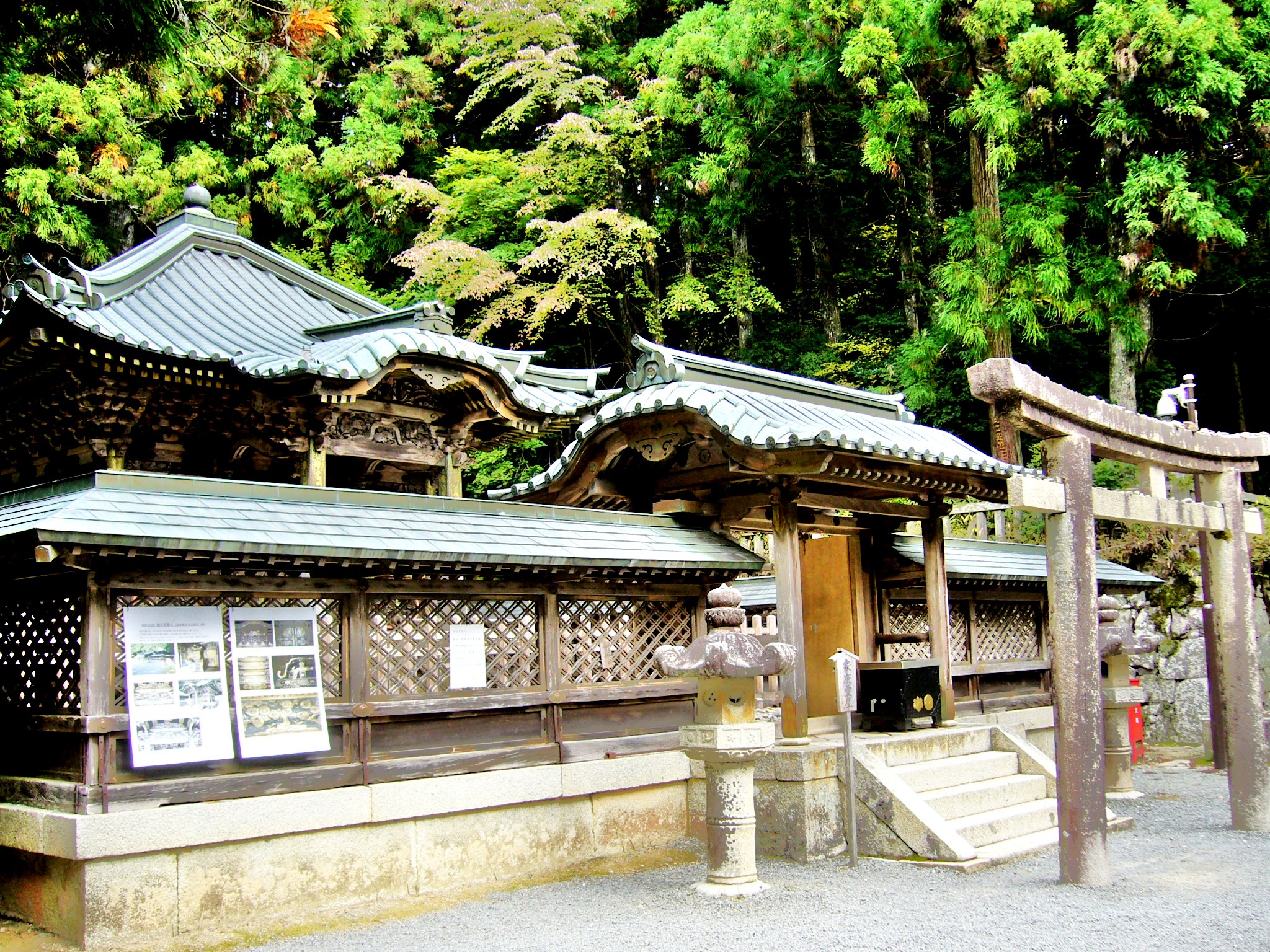 次に向かうのは千手院橋から高野山駅行きバスに乗り、最寄のバス停が波切不動前の世界遺産「徳川家霊台」がおすすめです。徳川家康、秀忠の御霊をまつるために三代将軍家光により寛永20年(1643)に創建されました。落成・完成まで10年以上費やされたといわれ、かつての高野聖方の本山大徳院の裏山に建てられています。